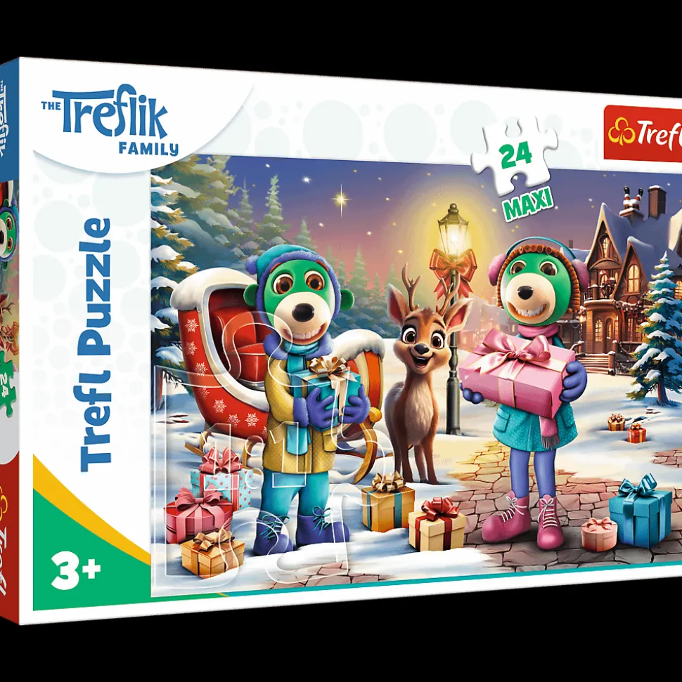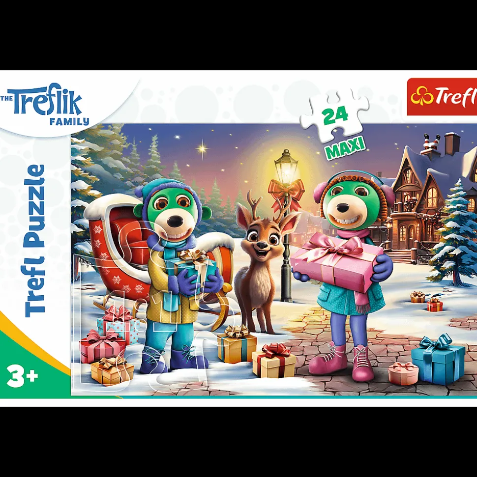 Zimowy czas z Treflikami to puzzle 24 Maxi składające się z 24 bardzo dużych elementów. Zostały zaprojektowane z myślą o wszystkich fanach i fankach bajki Rodzina Treflików. Po ułożeniu układanki powstanie duży obrazek, o wymiarach 600x400mm. Produkt został wykonany z wysokiej jakości materiałów, z zastosowaniem specjalnego kalandrowanego papieru odbijającego światło, co ułatwia układanie. Produkt wyprodukowano w Polsce, a do produkcji zostały użyte materiały ekologiczne.