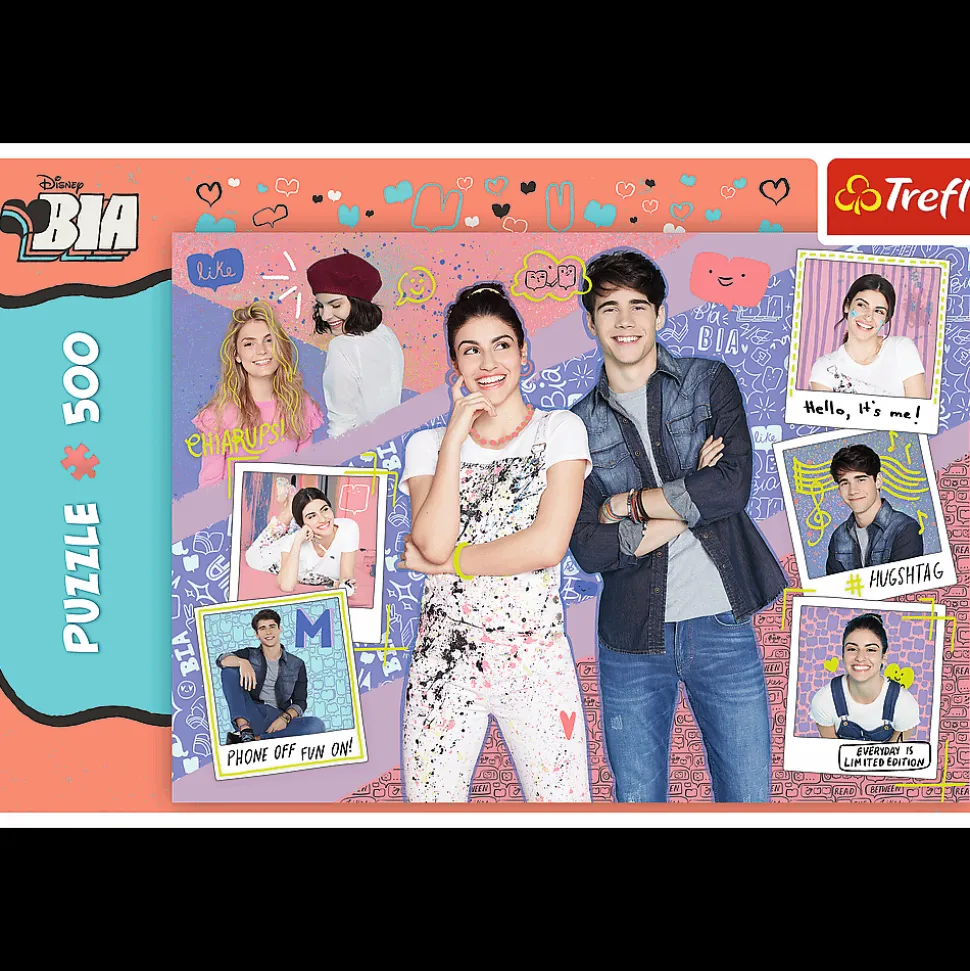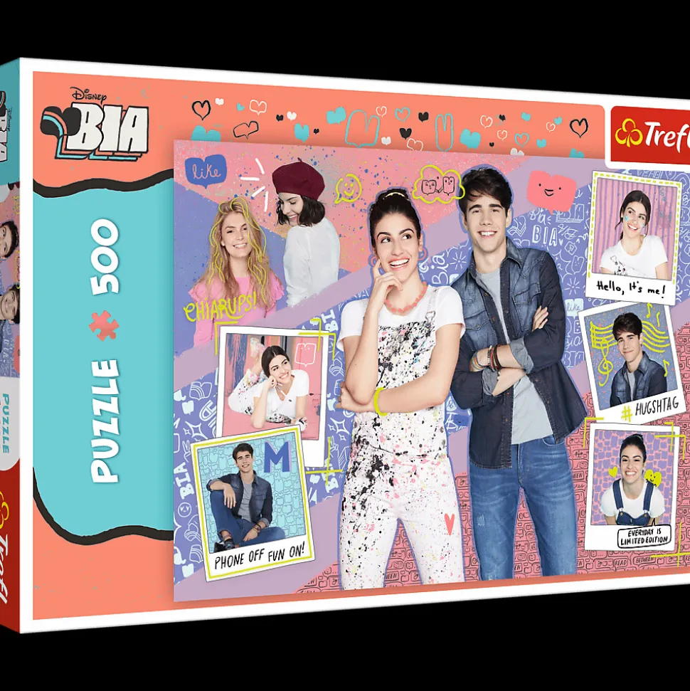 Puzzle 500 elementów z bohaterką Bia i jej przyjaciółmi. Puzzle zostały zaprojektowane z myślą o fanach i fankach bajki Bia. Po ułożeniu powstanie obrazek o wymiarach 48×34 cm. Wysoką jakość, nasycenie kolorów i bezpieczeństwo układania zapewnia kalandrowany papier odbijający światło, pokryty ekologicznymi farbami spożywczymi.