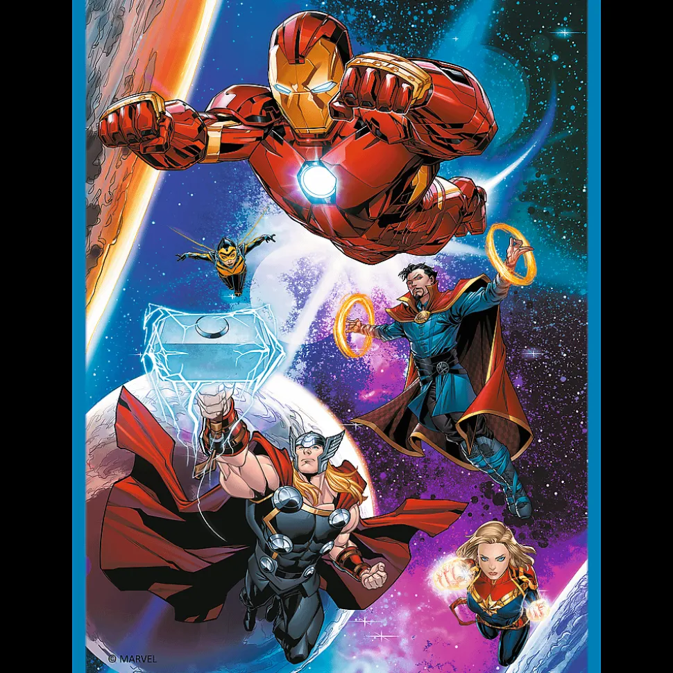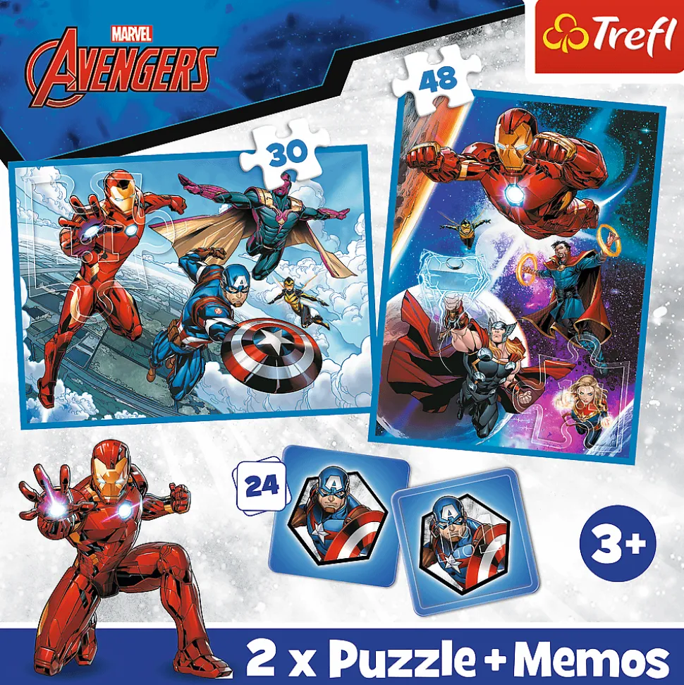 Puzzle składające się z 2 niezależnych układanek oraz gry memory, zaprojektowane z myślą o wszystkich fanach i fankach Avengers. Po ułożeniu układanek powstaną obrazki o wymiarach 275 x 205mm.