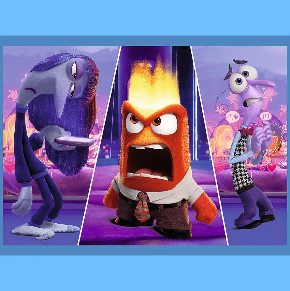 Emocje rządzą to 4 niezależne układanki dla dzieci, zaprojektowane z myślą o małych fanach przygód bohaterów bajki W głowie się nie mieści 2. Po ułożeniu puzzli powstaną 4 obrazki, z czego największy o wymiarach 285×205 mm. Zróżnicowana liczba elementów pozwala na zabawę zarówno młodszym, jak i nieco starszym dzieciom.