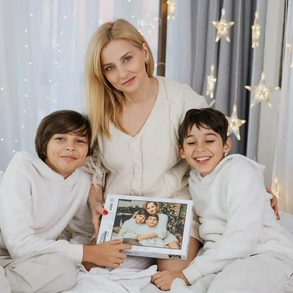 Stwórz sentymentalny prezent z własnych zdjęć dzięki naszym fotopuzzlom, składającym się z 500 elementów. Możesz stworzyć indywidualny kolaż ze swoich zdjęć i wybierać spośród 3 kolorów pudełek. Nasz intuicyjny edytor pozwala na łatwą obróbkę, w tym nakładanie filtrów, obracanie i przycinanie zdjęć, a także dodawanie stickerów i tekstu.