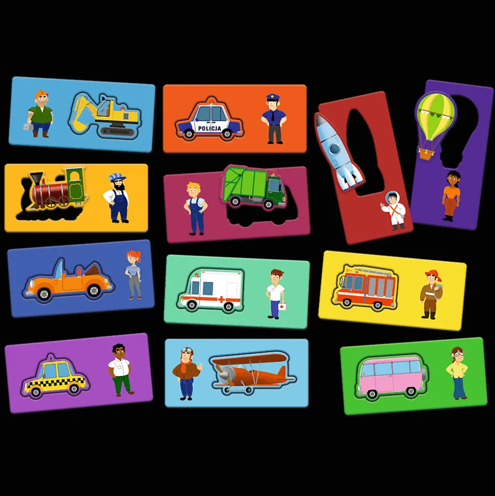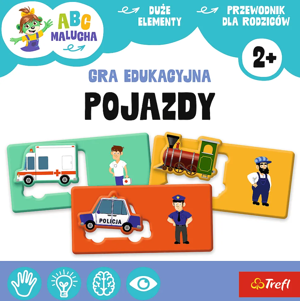 Pojazdy to edukacyjna gra dla dzieci od 2 roku życia. To układanka edukacyjna, podczas której najmłodsi uczą się w radosnej zabawie, nazw różnych środków transportu. Również ich właściwości i nazwó osób, które je prowadzą.