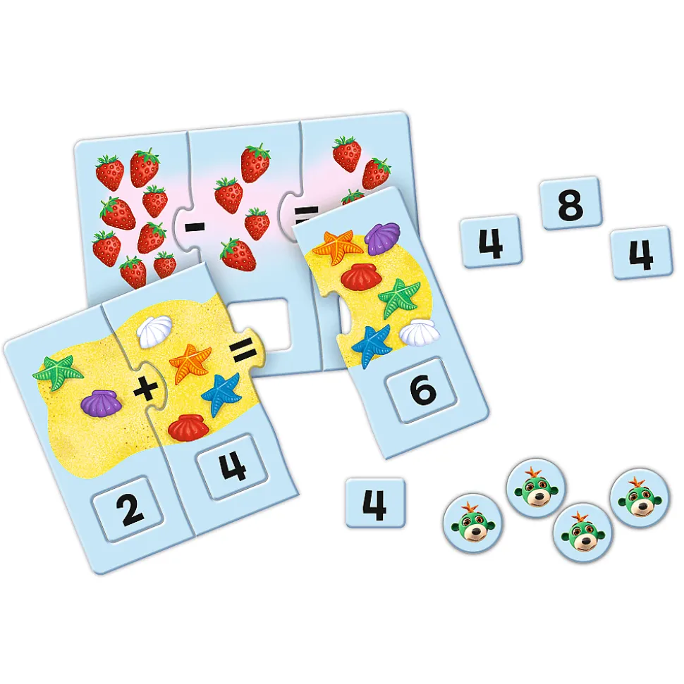 Liczymy to układanka edukacyjna, która poprzez zabawę wprowadza dzieci w świat liczenia. Gra w prosty sposób uczy opanować sztukę dodawania i odejmowania.