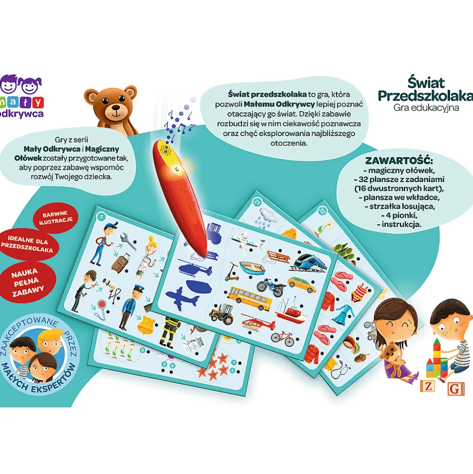 Świat przedszkolaka to gra, która pozwoli Małemu Odkrywcy lepiej poznać otaczający go świat. Dzięki zabawie rozbudzi się w nim ciekawość poznawcza oraz chęć eksplorowania najbliższego otoczenia.