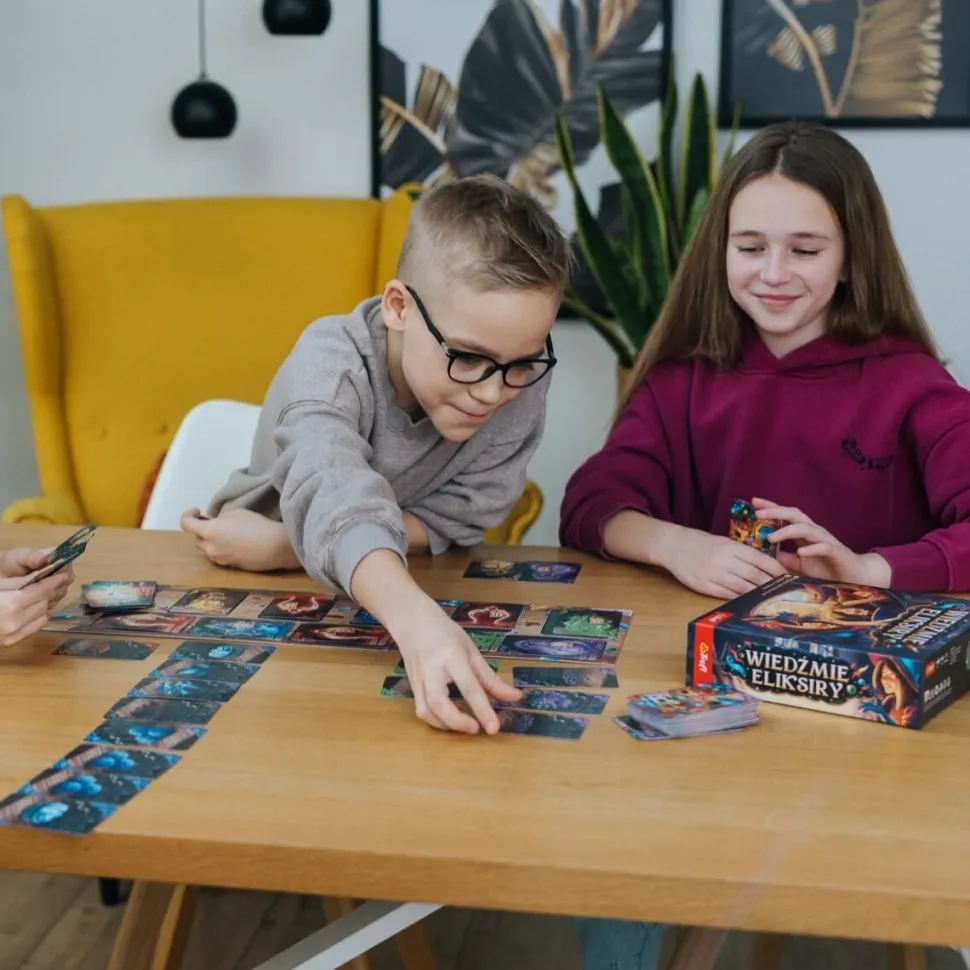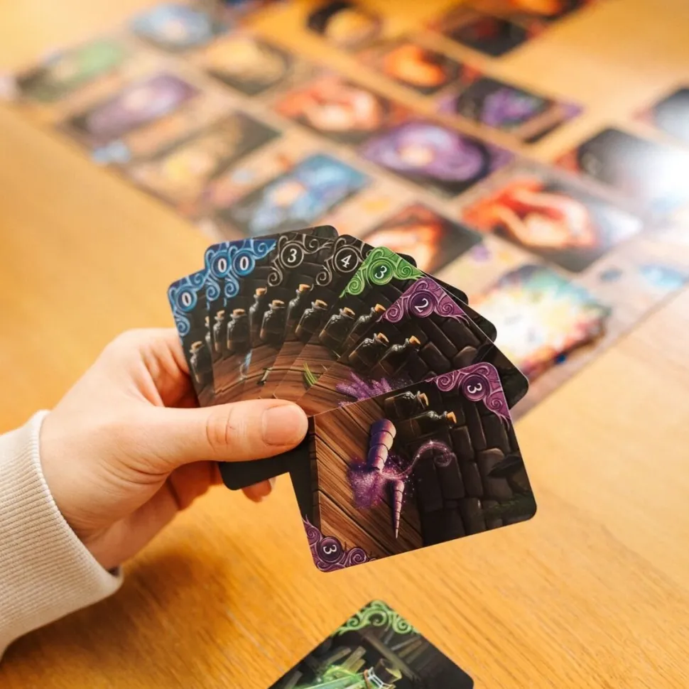 Wiedźmie eliksiry to szybka i prosta gra karciana dla całej rodziny osadzona w świecie fantasy. W trakcie rozgrywki będziecie zagrywać z ręki karty aktualnie warzonych eliksirów, starając się uniknąć ich eksplozji lub wręcz odwrotnie – doprowadzając do wybuchu.