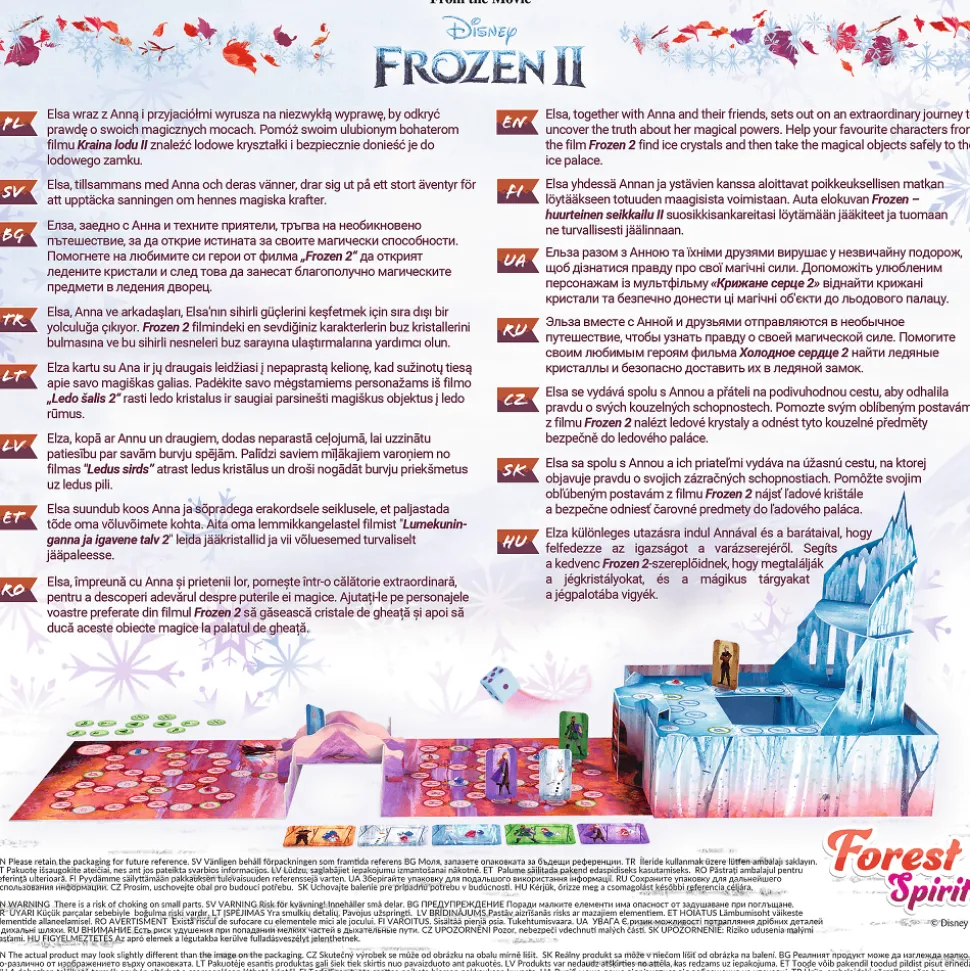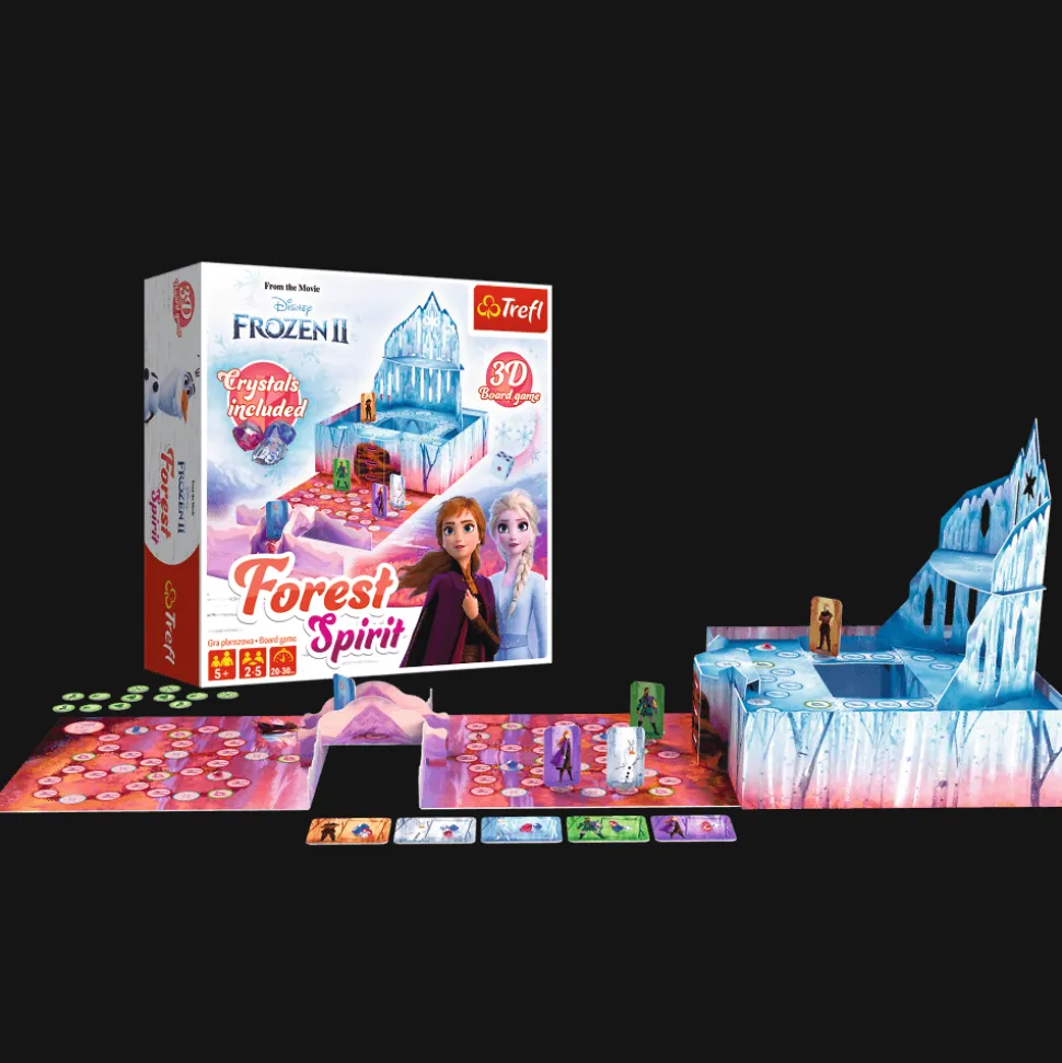 Forest Spirit to wyjątkowa, przestrzenna gra planszowa oparta o licencję Frozen 2. Pomóż swoim ulubionym bohaterom filmu „Kraina Lodu II” znaleźć lodowe kryształki i bezpiecznie donieść je do lodowego zamku.
