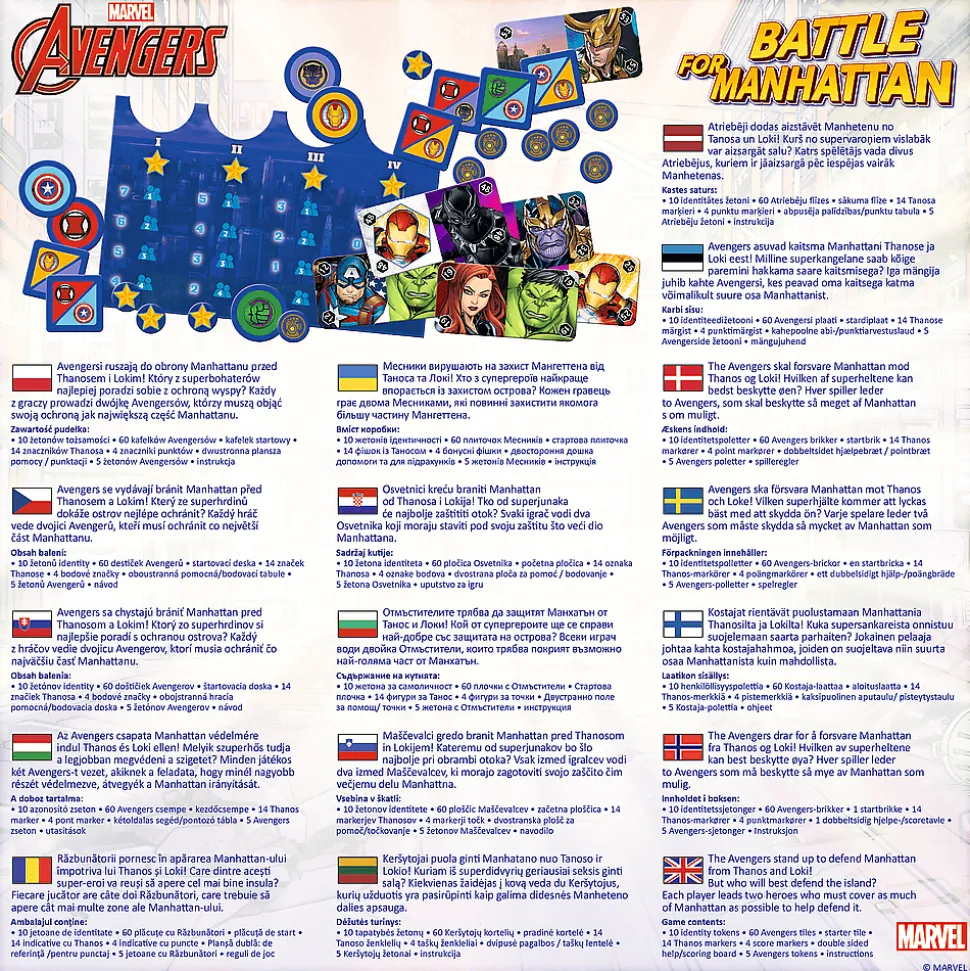 Każdy uczestnik gry otrzymuje w tajemnicy żeton z symbolami dwóch Avengersów. Zadaniem graczy jest zdobyć jak największą część Manhattanu pod kontrolą swoich wylosowanych bohaterów. Czeka na Was emocjonująca rozgrywka, pełna tajemnic i strategii, aby utrzymać bezpieczeństwo miasta!