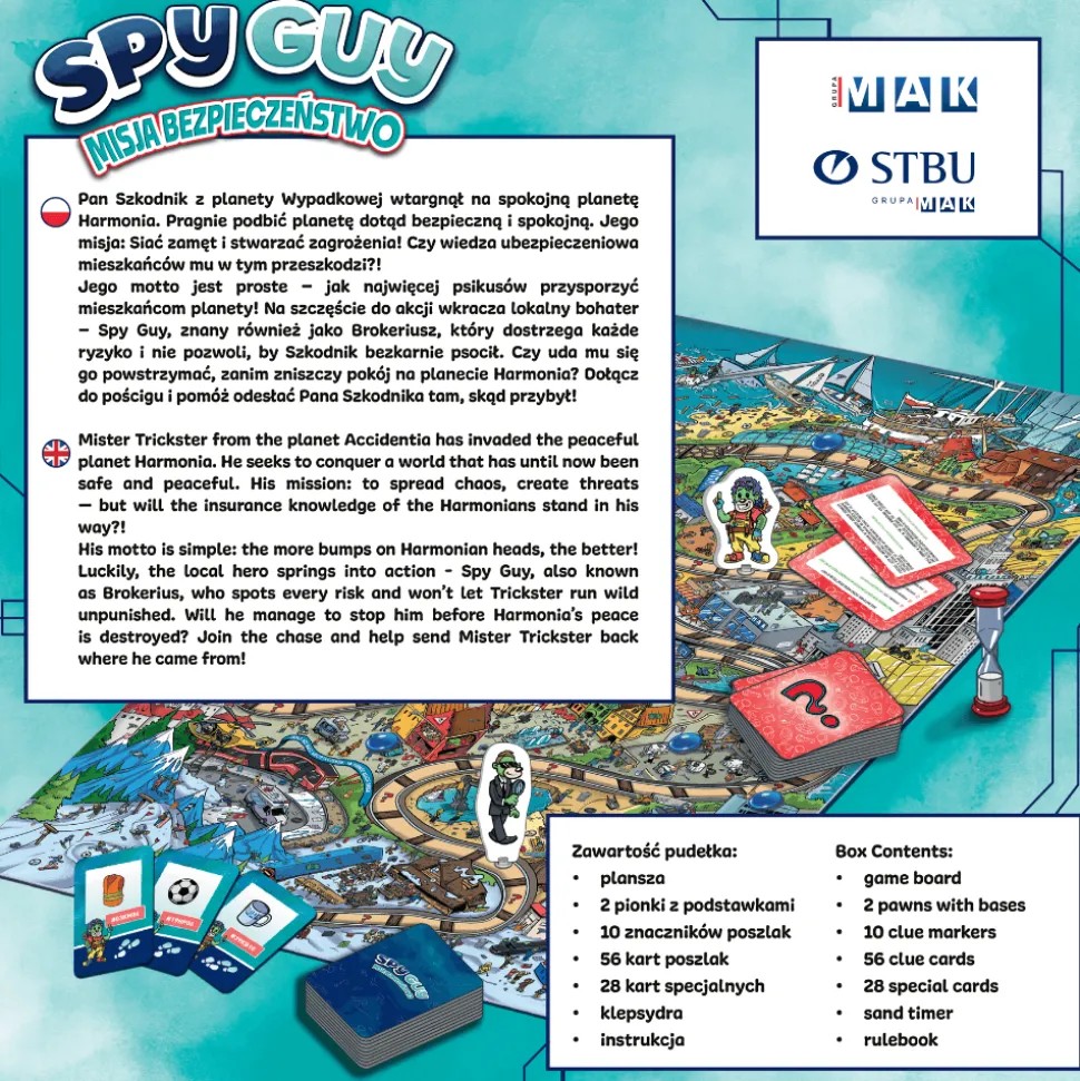 Czy uda Ci się ocalić planetę Harmonia przed podstępnym Panem Szkodnikiem z planety Wypadkowej? Ten niebezpieczny intruz chce wprowadzić chaos i zniszczyć spokój mieszkańców. Na szczęście do akcji wkracza lokalny bohater – Spy Guy, znany także jako Brokeriusz, który dostrzega każde ryzyko i nie pozwoli, by Pan Szkodnik działał bezkarnie.