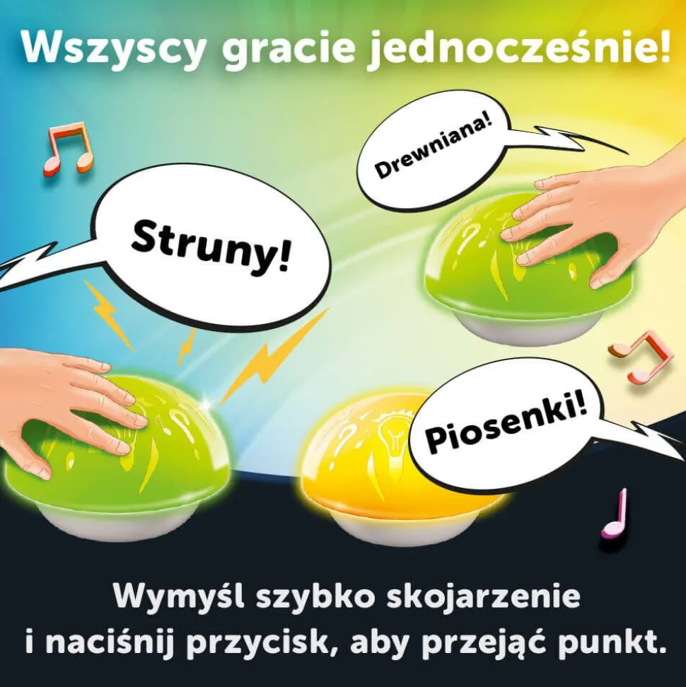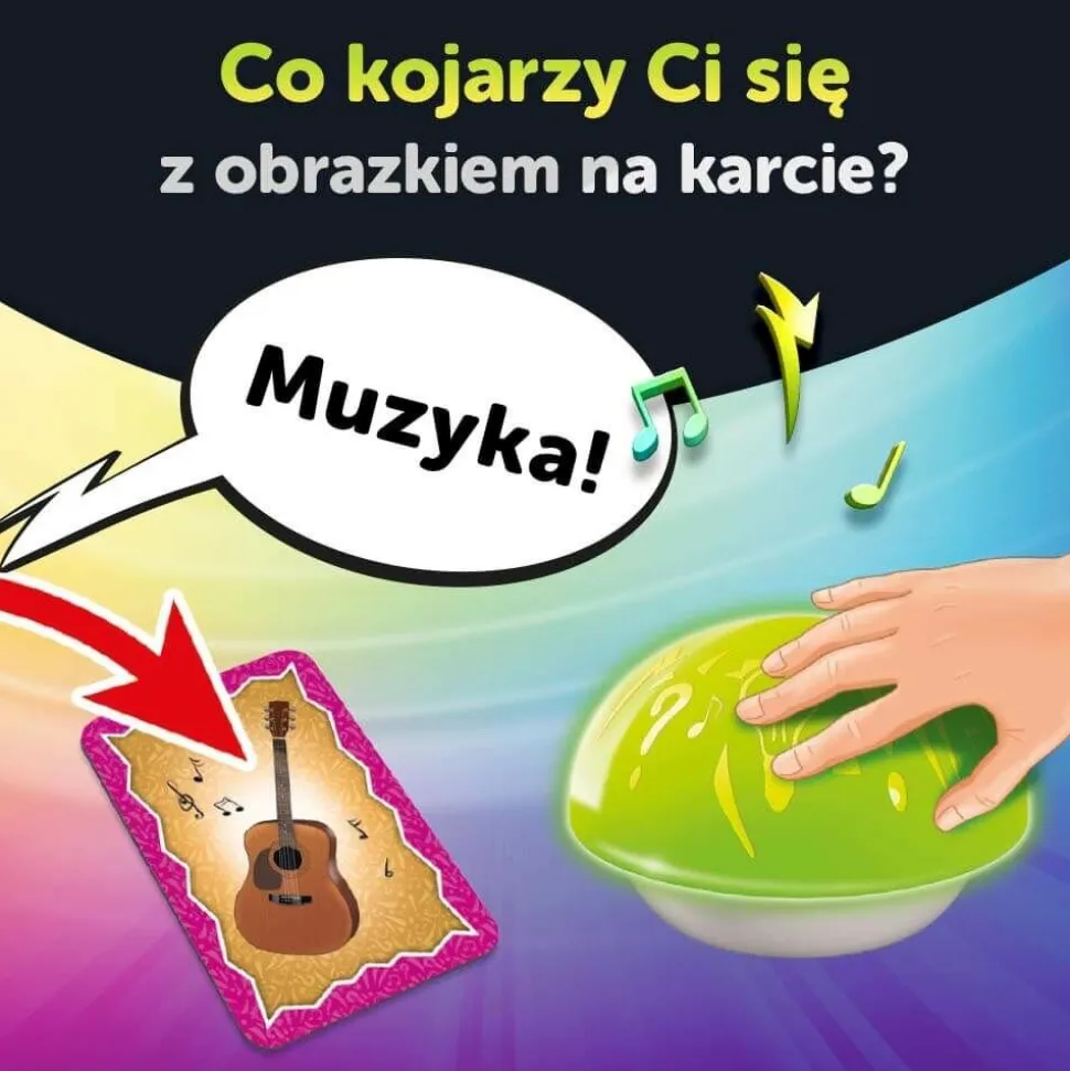 Co kojarzy Ci się z obrazkiem na karcie? Pewnie znasz mnóstwo odpowiedzi! Jakie jest Twoje pierwsze skojarzenie? Jeśli już wiesz, szybko naciśnij przycisk. Od teraz razem z pozostałymi graczami macie tylko kilka sekund na wykazanie się refleksem!