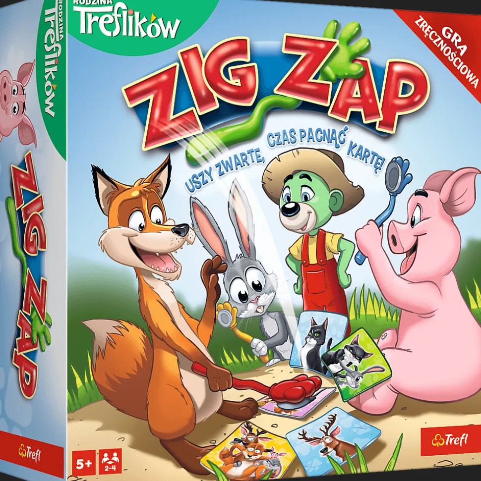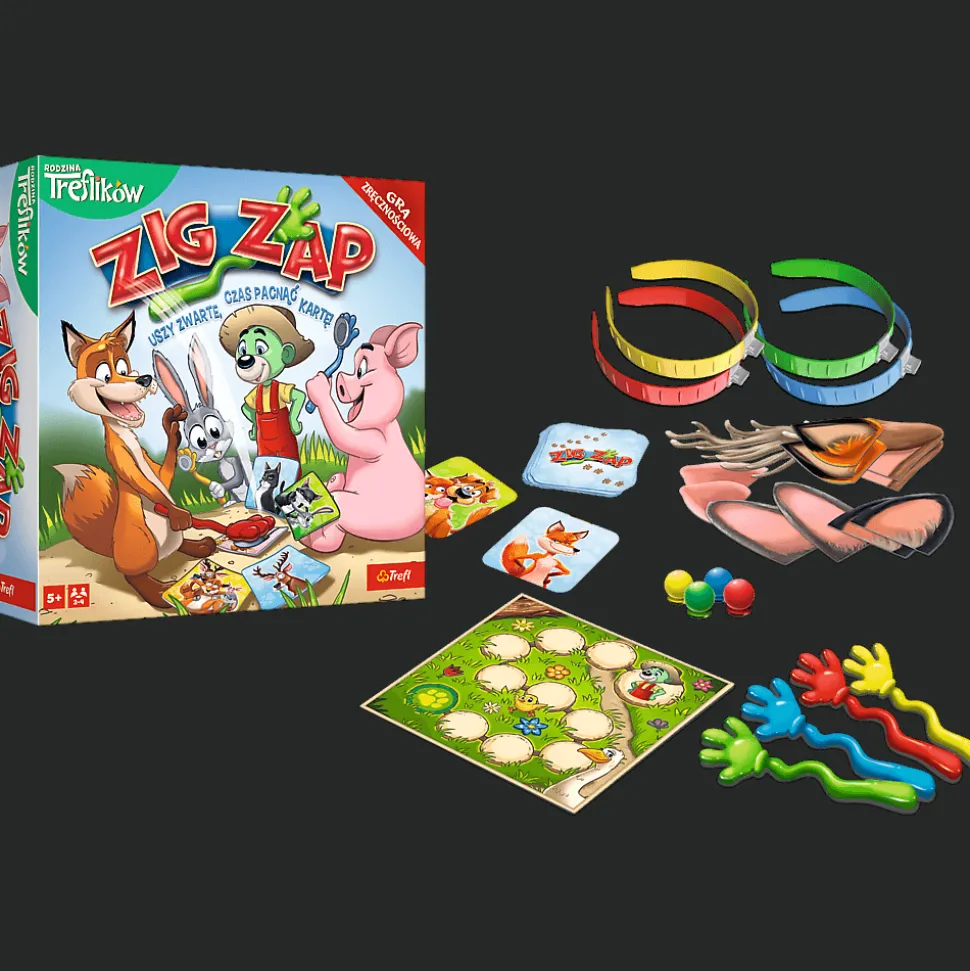 Uszy na głowę i packi w ruch! Zig Zap to dynamiczna pełna śmiechu gra, która przeniesie Was do naprawdę szalonego świata. Łap zwierzaki i wygrywaj. Zamień się uszami z kolegą lub koleżanką i koniecznie zapamiętaj, co masz na głowie. W tej grze zasady zmieniają się nieustannie. Bądź szybki i uważny i przede wszystkim pacnij kartę jako pierwszy!