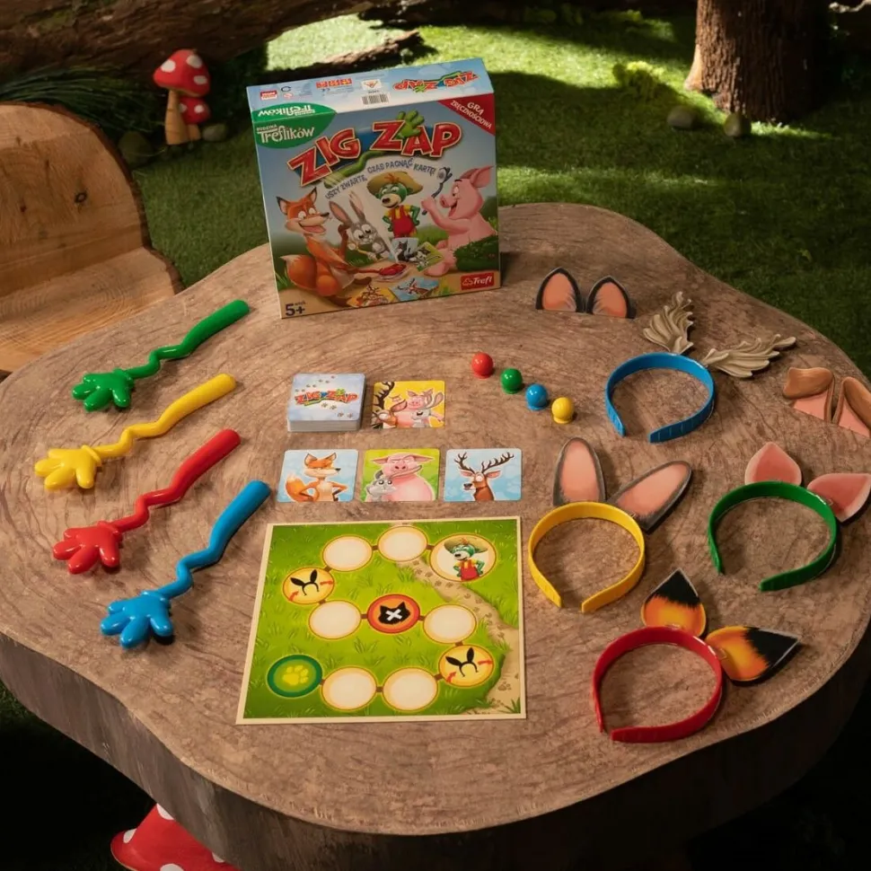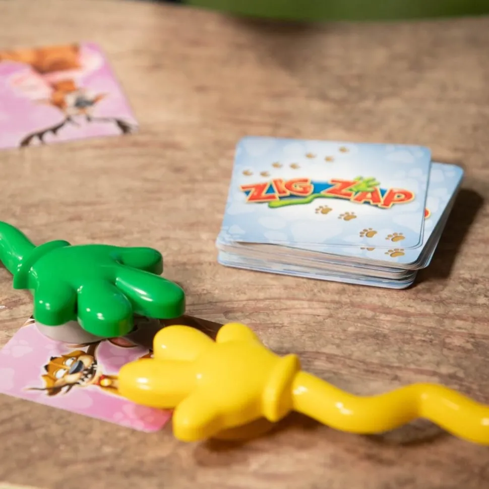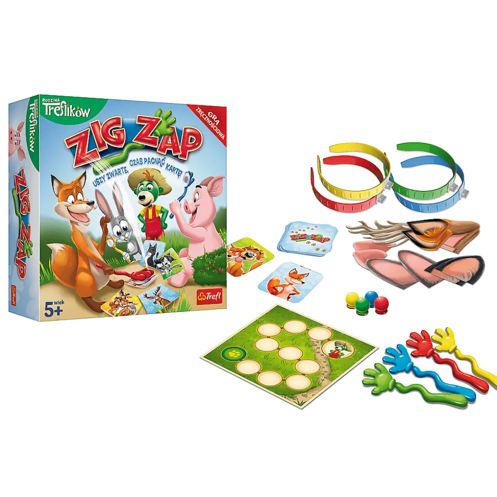 Uszy na głowę i packi w ruch! Zig Zap to dynamiczna pełna śmiechu gra, która przeniesie Was do naprawdę szalonego świata. Łap zwierzaki i wygrywaj. Zamień się uszami z kolegą lub koleżanką i koniecznie zapamiętaj, co masz na głowie. W tej grze zasady zmieniają się nieustannie. Bądź szybki i uważny i przede wszystkim pacnij kartę jako pierwszy!