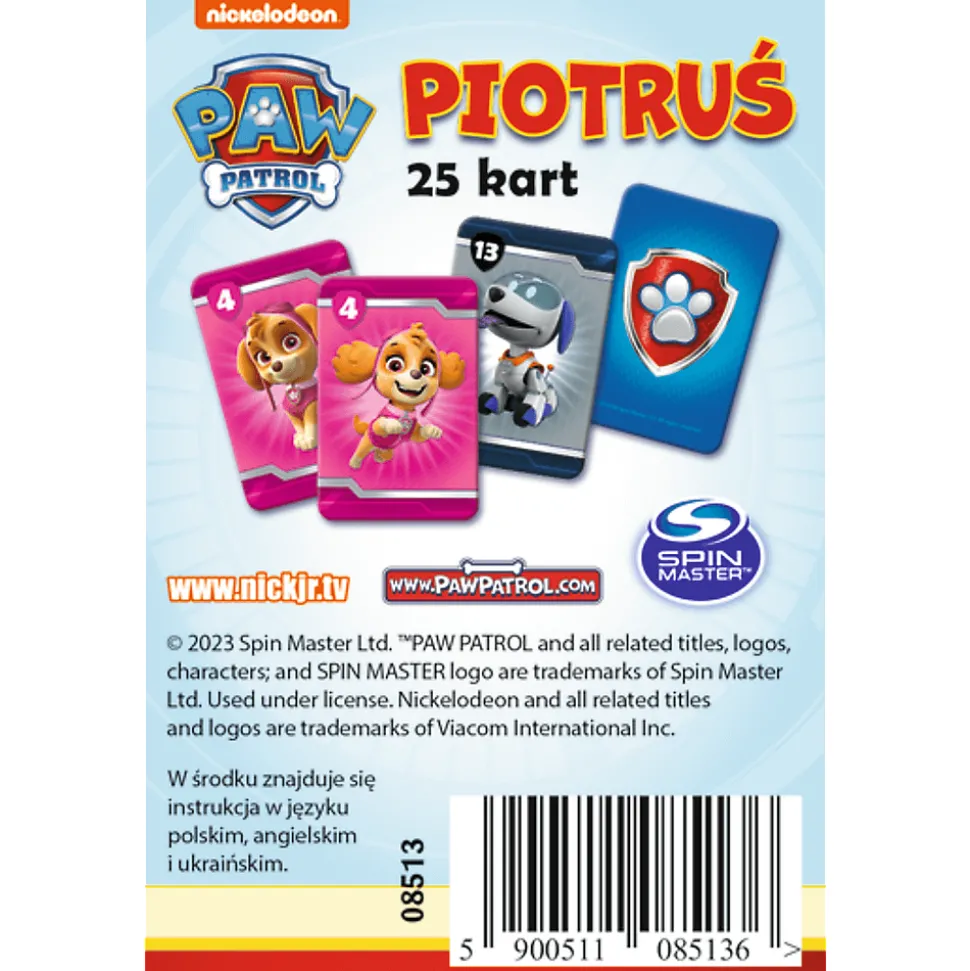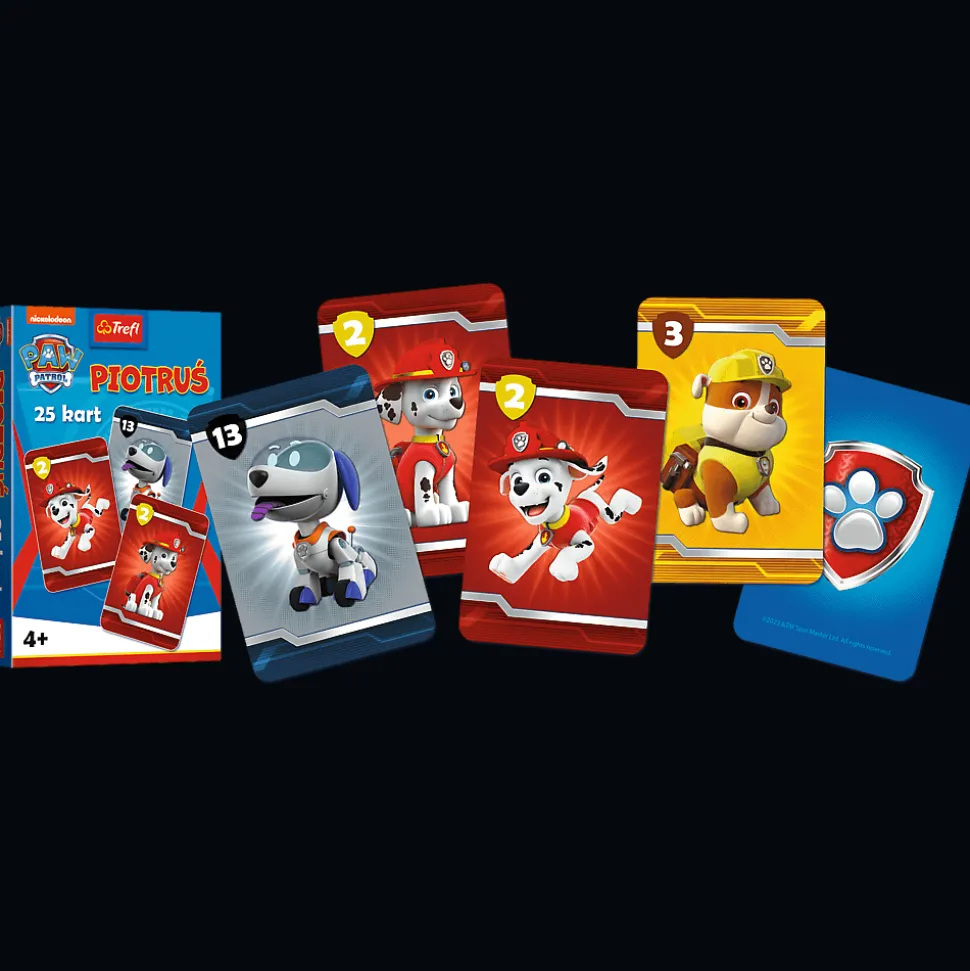 Karty Piotruś Psi Patrol to gra karciana, którą znają wszystkie polskie dzieci. Proste zasady i szybka, emocjonująca rozgrywka to powody jej sukcesu oraz popularności. Jeśli dodać do tego karty z wizerunkami popularnych i lubianych postaci z bajek, kreskówek, komiksów i filmów – otrzymujemy produkt, który kochają wszystkie dzieci.
