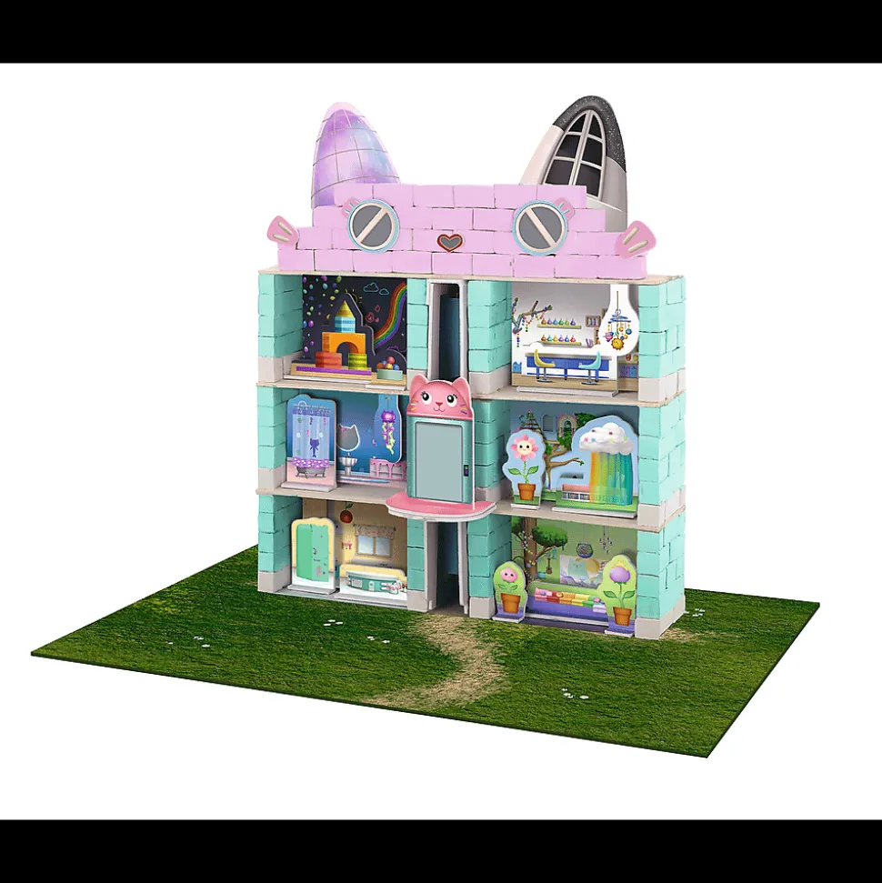 Przenieś się do bajkowego świata i zbuduj Koci Domek Gabi, wykorzystując prawdziwe cegły, drewno, barwnik do malowania i elementy dekoracyjne. Skorzystaj z dołączonych planów budowy lub użyj wyobraźni do stworzenia niepowtarzalnej konstrukcji. To nie koniec zabawy! Rozpuść konstrukcję w wodzie i buduj dalej, wykorzystując ponownie te same cegły!