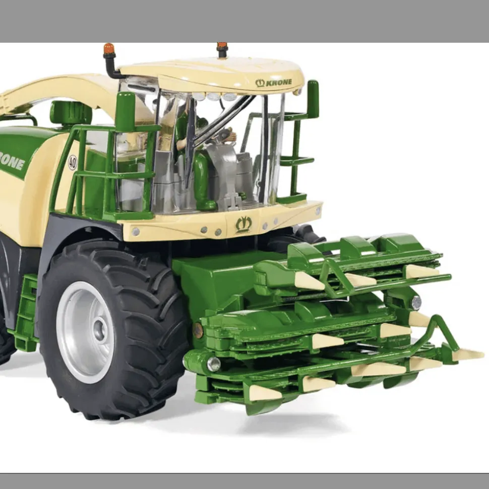 Kombajn do kukurydzy Krone BiG X 580 w skali 1:32 sprawdzi się świetni w gospodarstwie rolnym. Pojazd posiada trzy otwierane klapy silnikowe oraz obrotową rurę wyrzutową. Moc rzędu 580 koni mechanicznych oraz różnorodne funkcje sprawiają, że ten nowy i kompaktowy silosokombajn od Krone staje się silną maszyną na gospodarstwie rolnym zaaranżowanym w pokoju dziecięcym. Trzy klapki silnikowe można otworzyć i zobaczyć olbrzymi silnik. Obrotowa rura wyrzutowa stanowi dopełnienie przedstawionego modelu dokładnie odwzorowującego oryginał