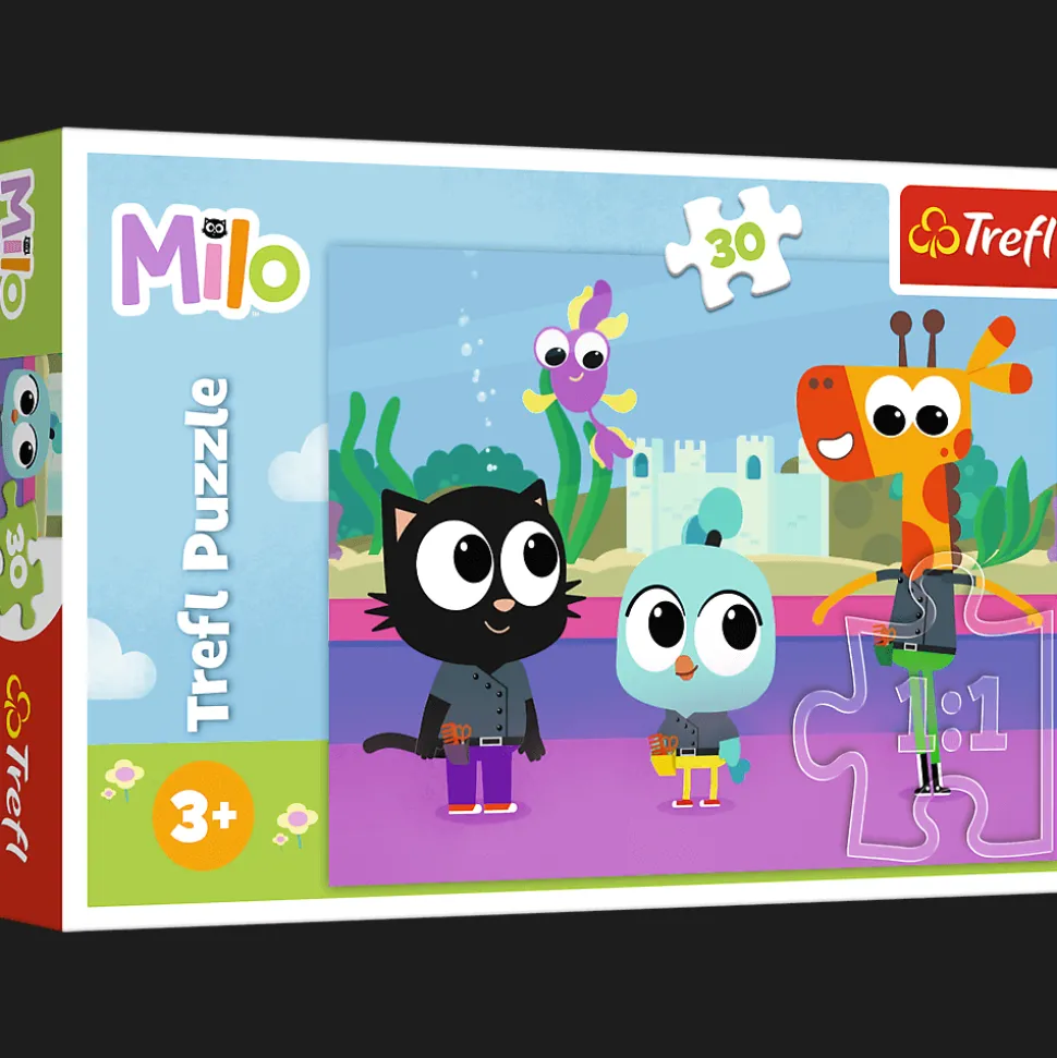 Kotek Milo to puzzle składające się z 30 elementów, zaprojektowane z myślą o małych fanach bajki Milo. Po ułożeniu układanki powstanie obrazek o wymiarach 270×200 mm.