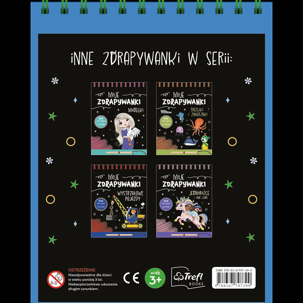 Odkryj fascynujący świat z serią „Moje Zdrapywanki” – 32-stronicową książką activity, zawierającą zarówno kolorowanki, jak i zdrapywanki, zaprojektowaną z myślą o najmłodszych artystach. Wyjątkowa spiralna forma sprawia, że korzystanie z niej staje się wygodne i przyjemne.