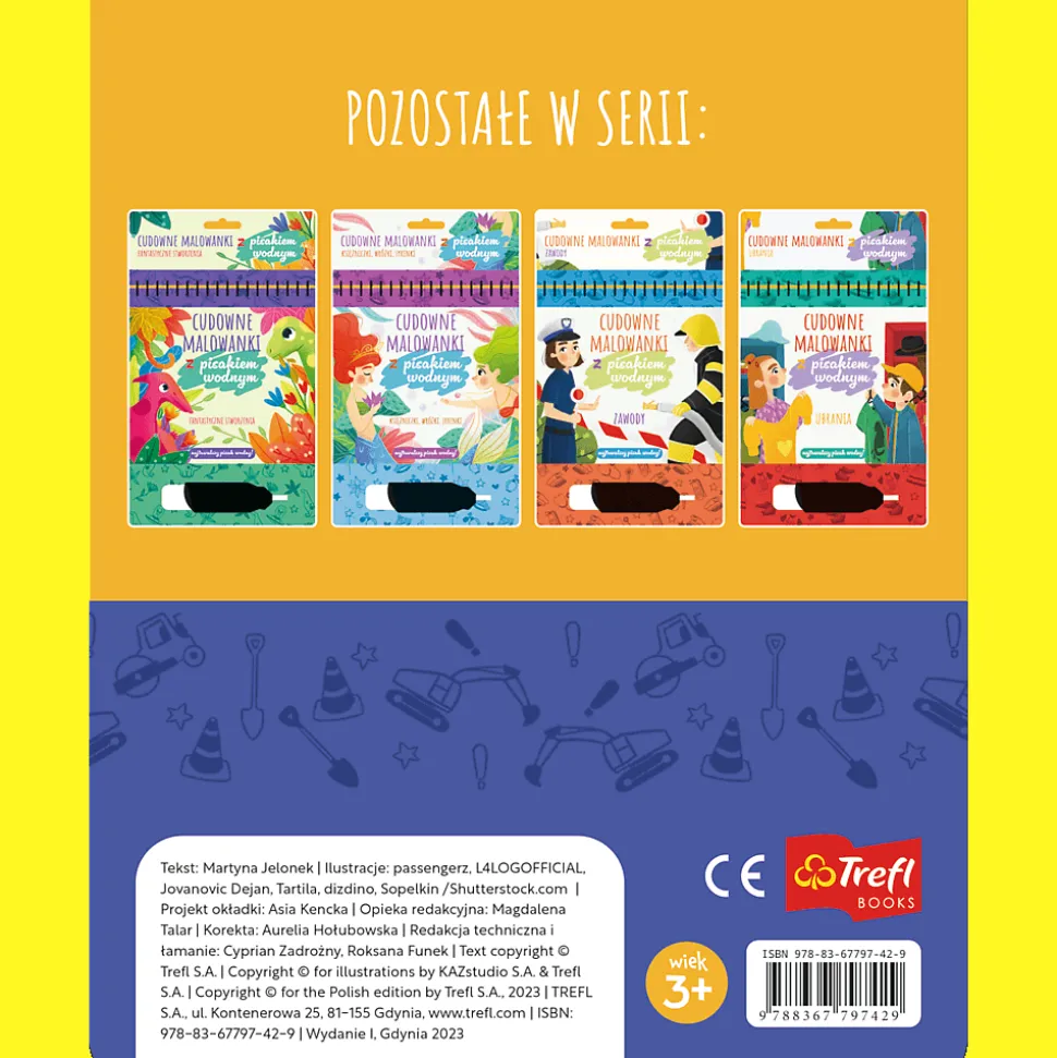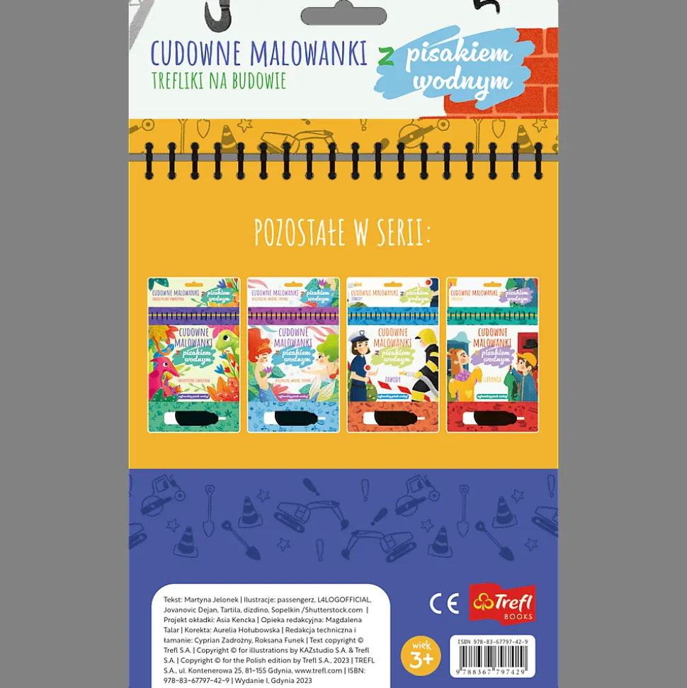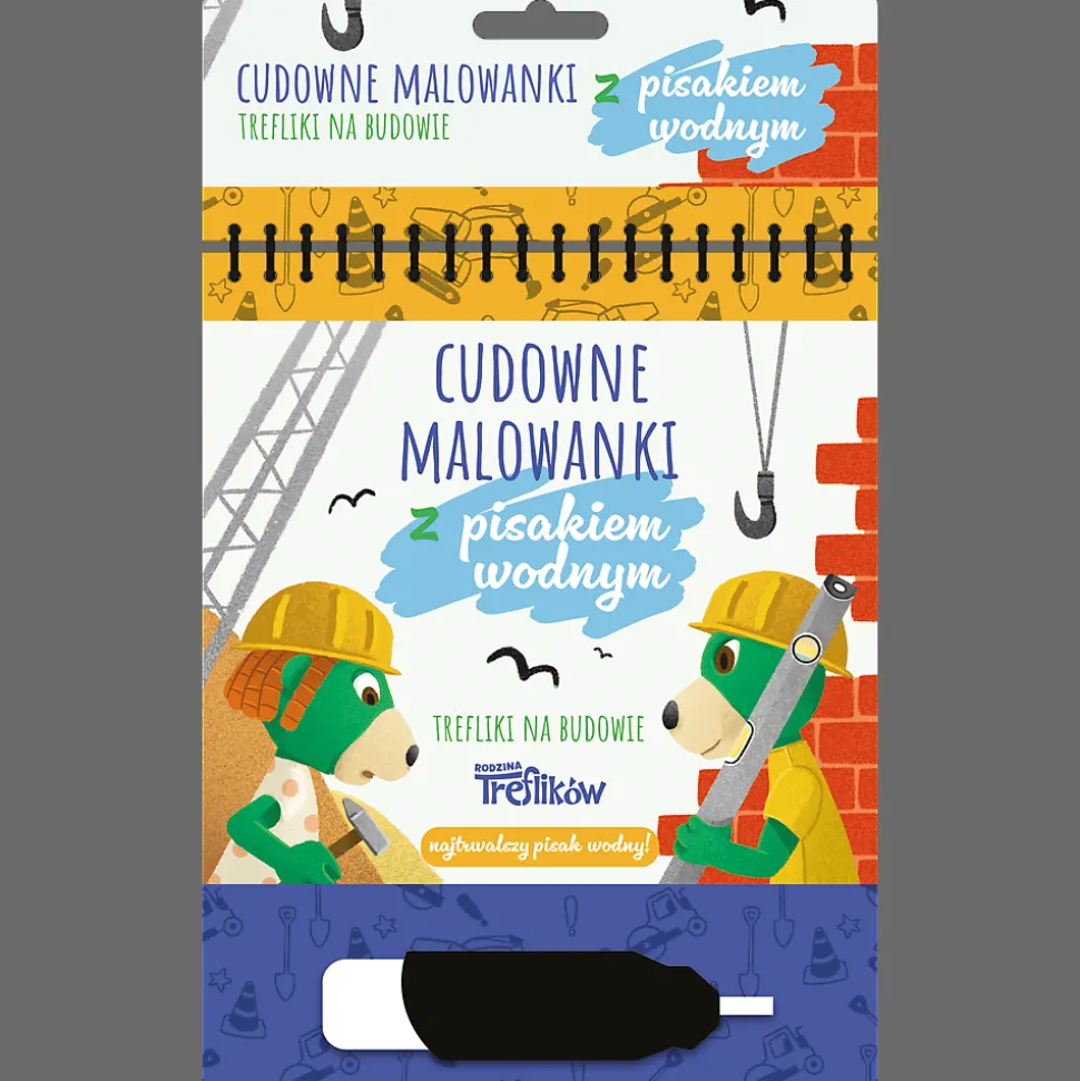 Trefliki na budowie. Cudowne malowanki z pisakiem wodnym to 10 stron pełnych uroczych ilustracji opowiadających przygody Treflika i Treflinki.