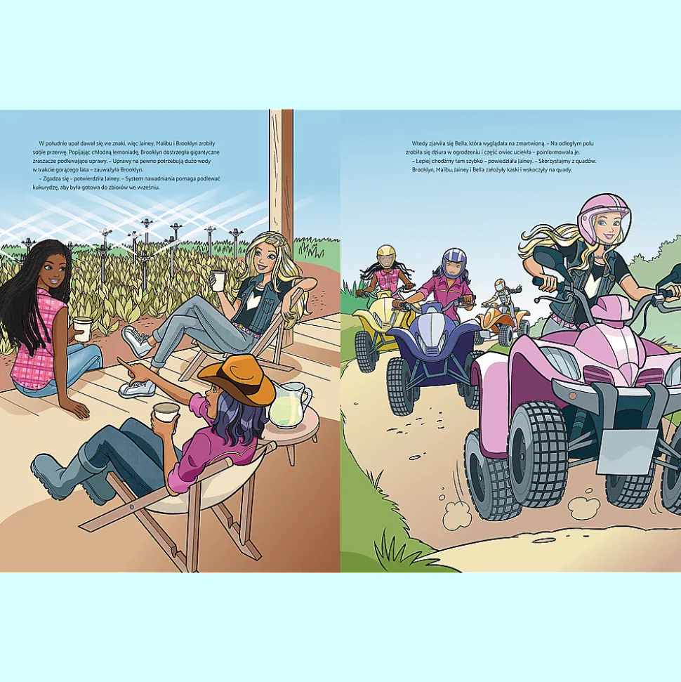 Dołącz do Barbie i jej przyjaciółek w wyjątkowej przygodzie na wsi! W tej części inspirującej serii Możesz być kim chcesz! dziewczynki postanawiają zostać rolniczkami i poznać codzienne życie na farmie. Czeka na nie mnóstwo zadań – od dojenia krów, przez karmienie zwierząt, aż po jazdę ciągnikiem.