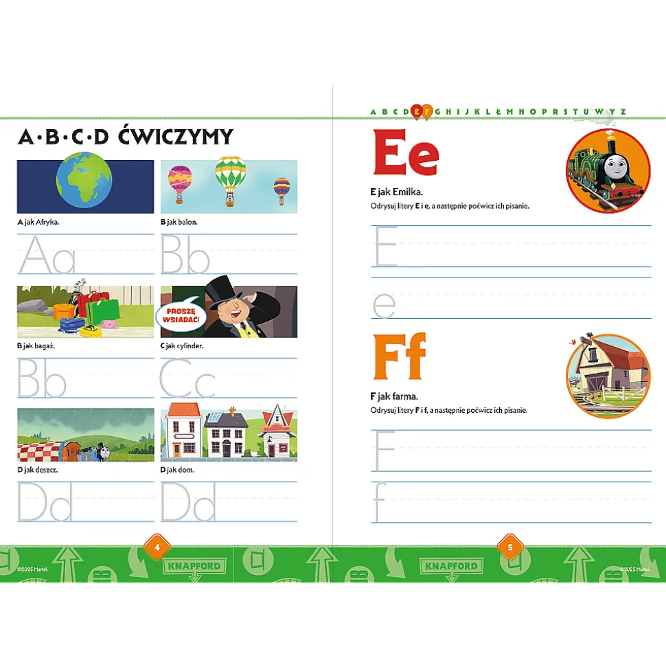 Dołącz do Tomka i jego przyjaciół w pełnej uśmiechu podróży po świecie liter! Ta edukacyjna książeczka została stworzona z myślą o najmłodszych, którzy stawiają pierwsze kroki w nauce alfabetu, pisania oraz ćwiczeniu pamięci. Dzięki kolorowym ilustracjom i ulubionym bohaterom dzieci uczą się przez zabawę – rozpoznają litery, ćwiczą pisanie po śladzie i wykonują proste zadania rozwijające zapamiętywanie.