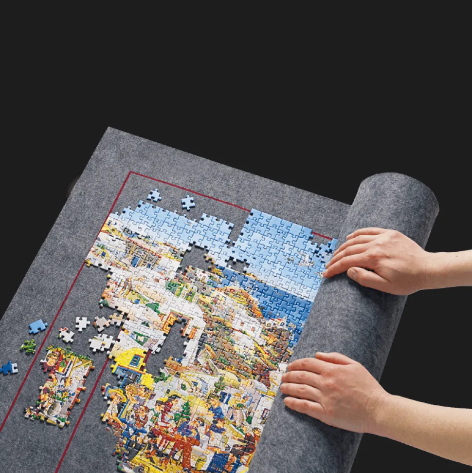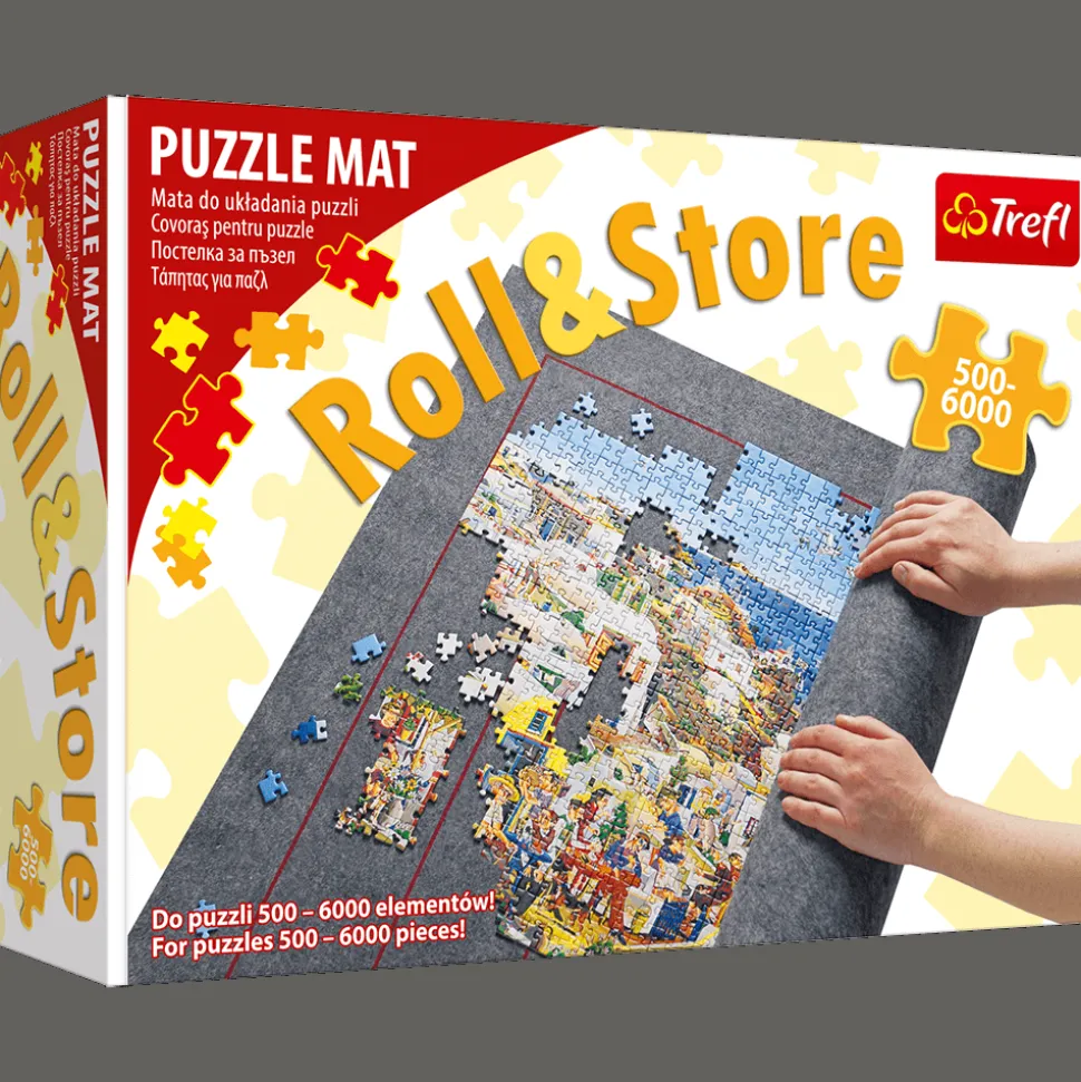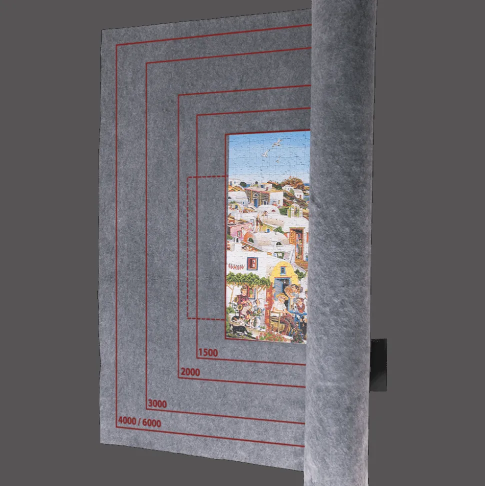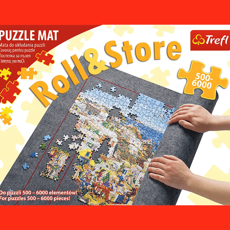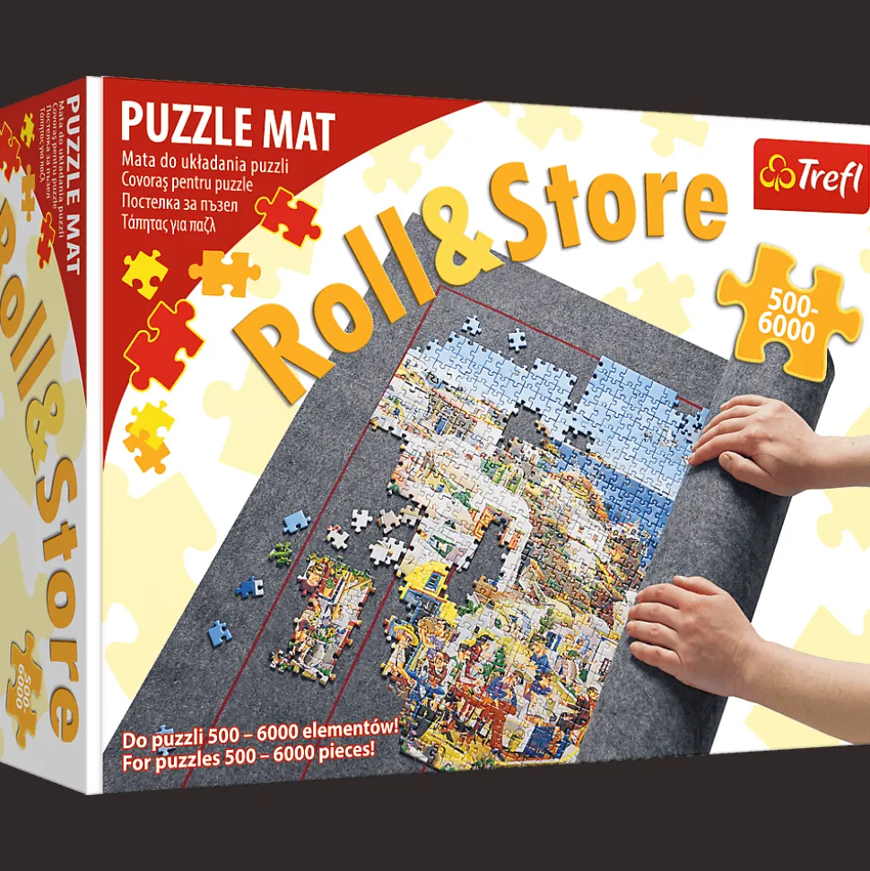 Specjalna mata do puzzli, która pozwala układać i przechowywać nieukończone układanki. Ramki na macie pasują do puzzli 500, 1000, 1500, 2000, 3000, 4000 i 6000 elementów, a także układanek panoramicznych 500 – 1000 elementów. W skład zestawu wchodzi: tuba, mata do układania puzzli, 3 rzepy. Jak schować puzzle? Nic prostszego! Składamy tubę, nawijamy na nią matę z puzzlami i spinamy rzepami tubę z matą. Mata po rozłożeniu ma wymiary: 148×108 cm.