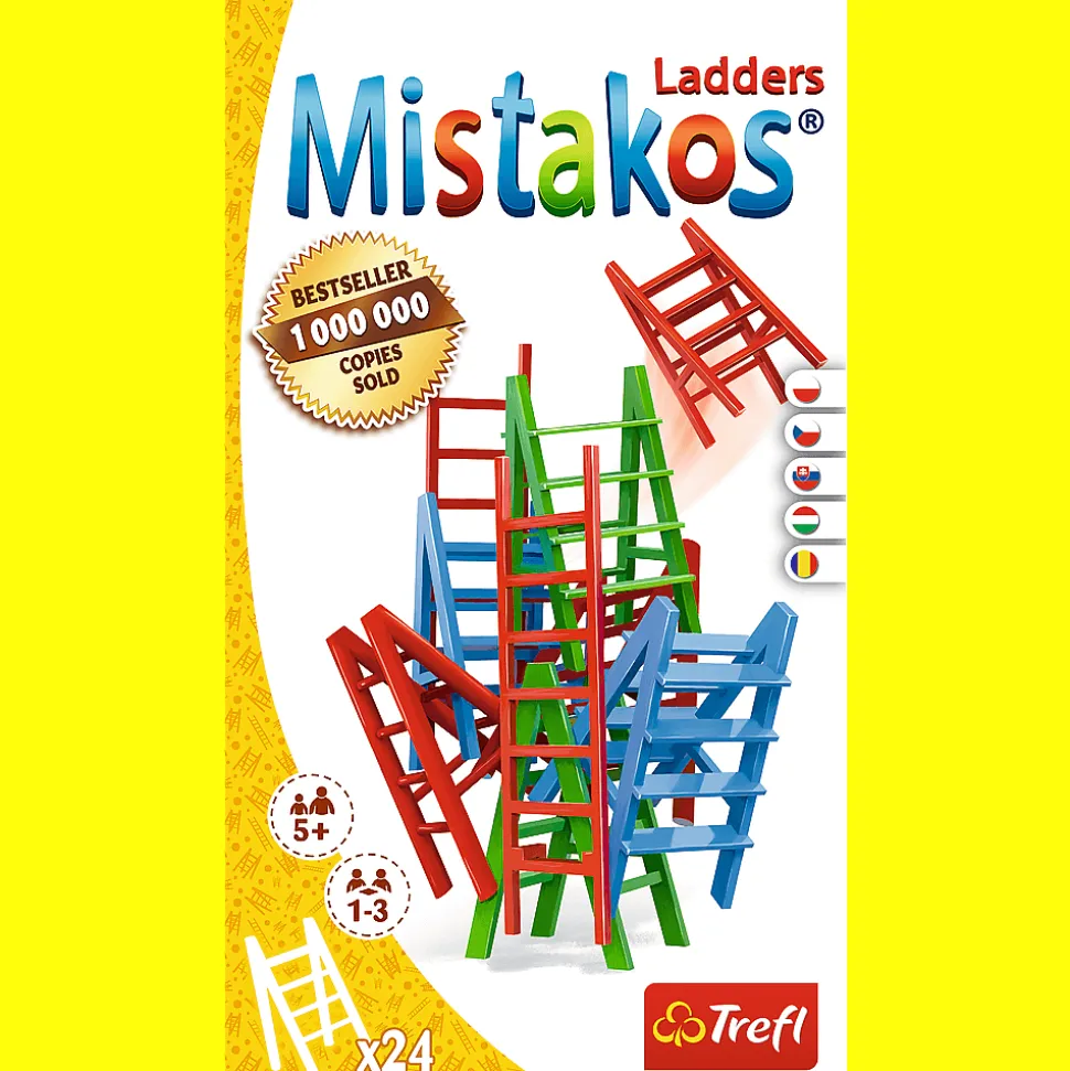 Nowa odsłona kultowej gry zręcznościowej Mistakos, tym razem z drabinami w roli głównej! Zdobądź jak najmniejszą liczbę punktów karnych lub jak najszybciej pozbądź się drabin w danym kolorze w trakcie ustawiania z nich wspólnej, imponującej konstrukcji.