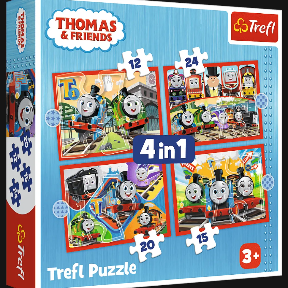 Odjazdowy Tomek to puzzle składające się z 4 niezależnych układanek, zaprojektowane z myślą o wszystkich fanach i fankach bajki Tomek i przyjaciele. Po ułożeniu układanek powstaną obrazki o wymiarach 285×205 mm z głównymi bohaterami bajki.