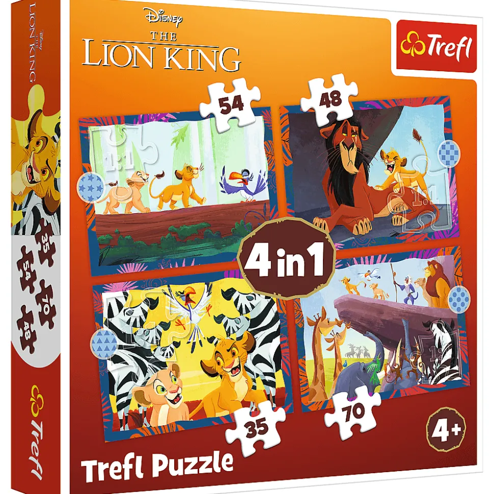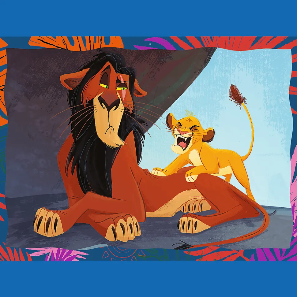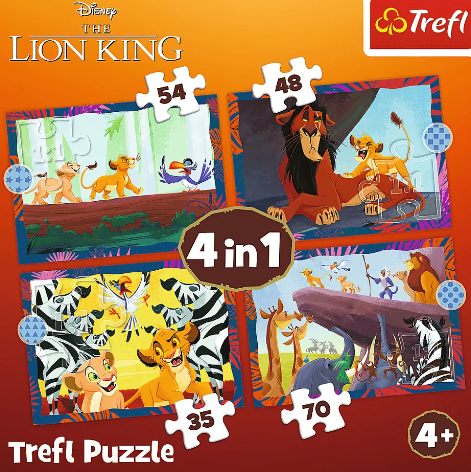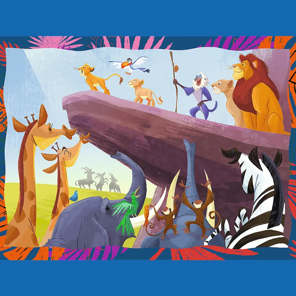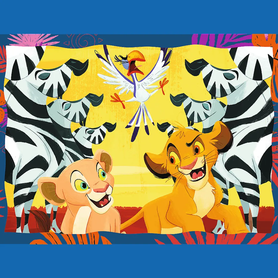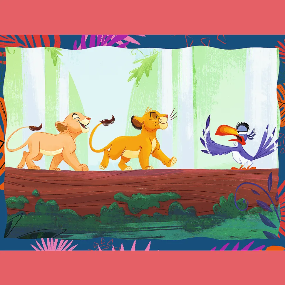 Odważny Król Lew to 4 niezależne układanki dla dzieci, zaprojektowane z myślą o małych fanach przygód bohaterów bajki Król Lew. Po ułożeniu puzzli powstaną 4 obrazki, z czego największy o wymiarach 285×205 mm. Zróżnicowana liczba elementów pozwala na zabawę zarówno młodszym, jak i nieco starszym dzieciom.