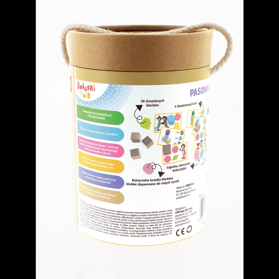 A na kartach nie kto inny jak postacie z ulubionego serialu Bobaski i Miś. Zabawka wspiera rozwój motoryki małej oraz koordynacji wzrokowo-ruchowej, a także rozwija wyobraźnię przestrzenną