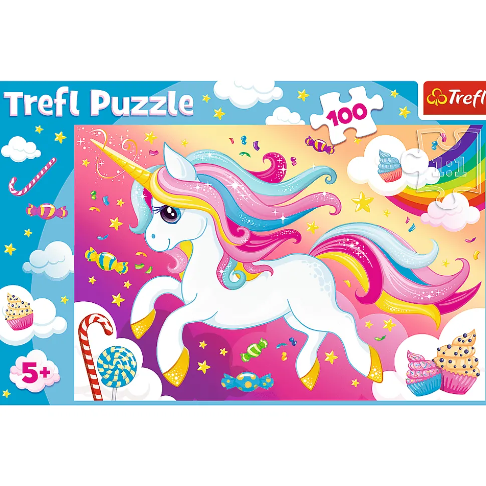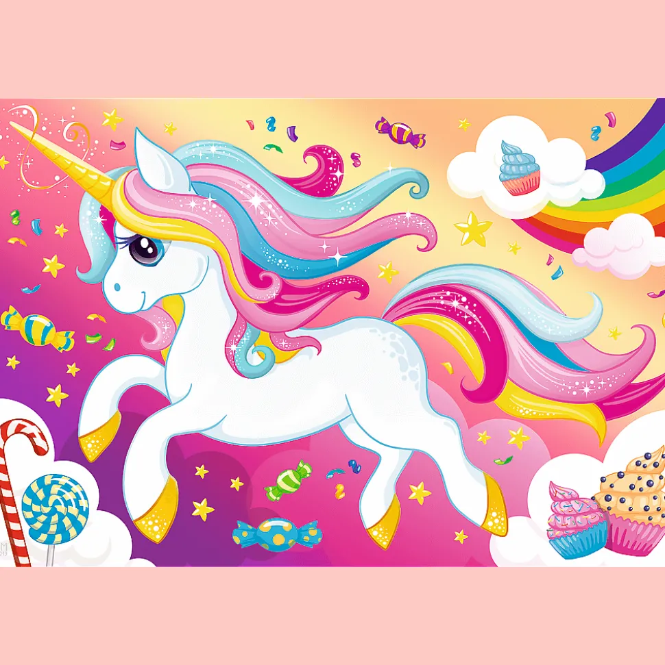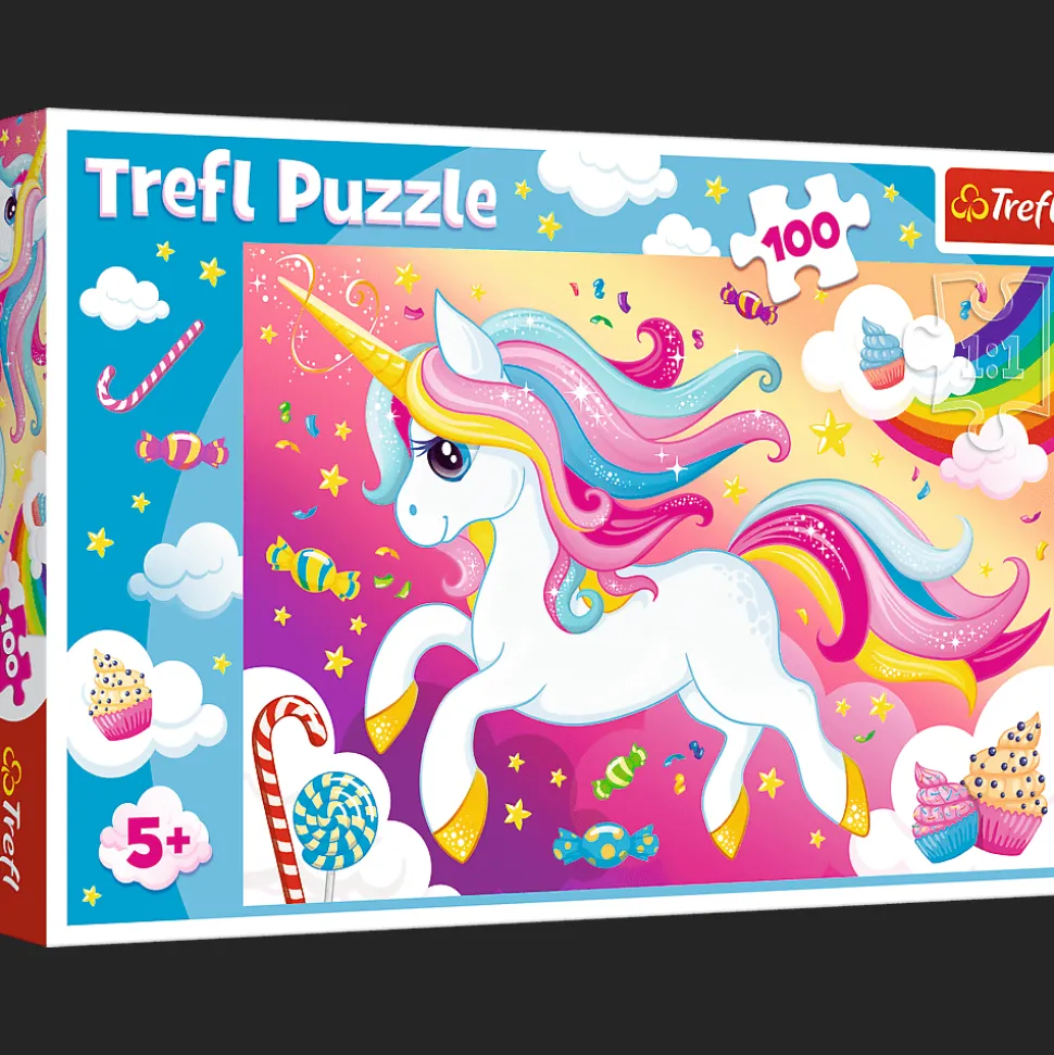 Puzzle składające się ze 100 elementów, zaprojektowane z myślą o wszystkich miłośniczkach i miłośnikach słodkich jednorożców. Po ułożeniu układanki powstanie obrazek o wymiarach 410×278 mm.
