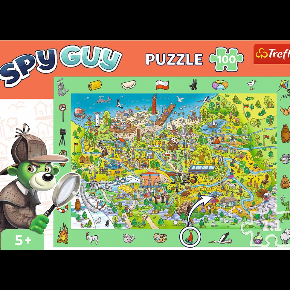 Spy Guy – Polska 100 elementów to wyjątkowe, rysunkowe puzzle, które rozbudzą Twój zmysł obserwacyjny!