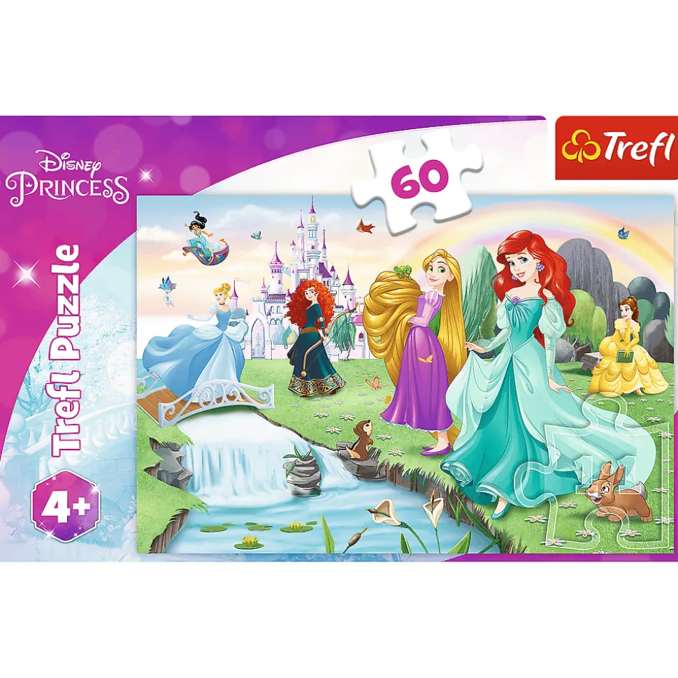Poznaj Księżniczki to puzzle składające się z 60 elementów, zaprojektowaną z myślą o wszystkich fanach i fankach bajkowych księżniczek Disney. Po ułożeniu układanki powstanie obrazek o wymiarach 330x220mm.