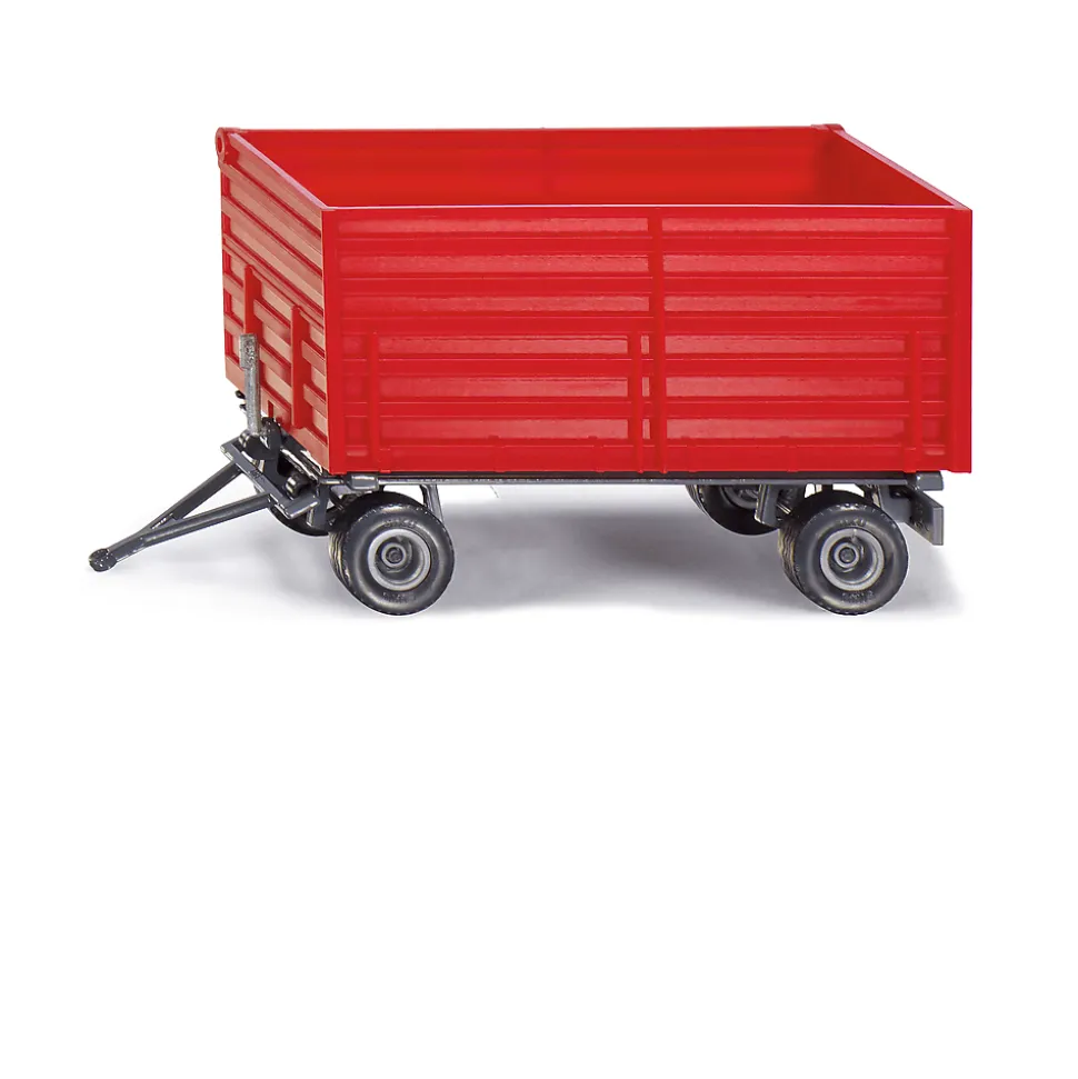 Przyczepa dwuosiowa świetnie sprawdza się podczas żniw na farmie. Pojazd odchyla się w prawą stronę, a prawą klapę można otworzyć, co ułatwia wysypanie zawartości.