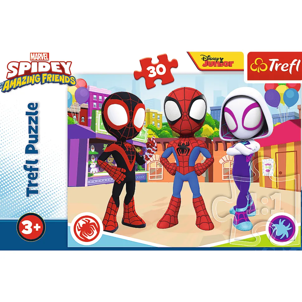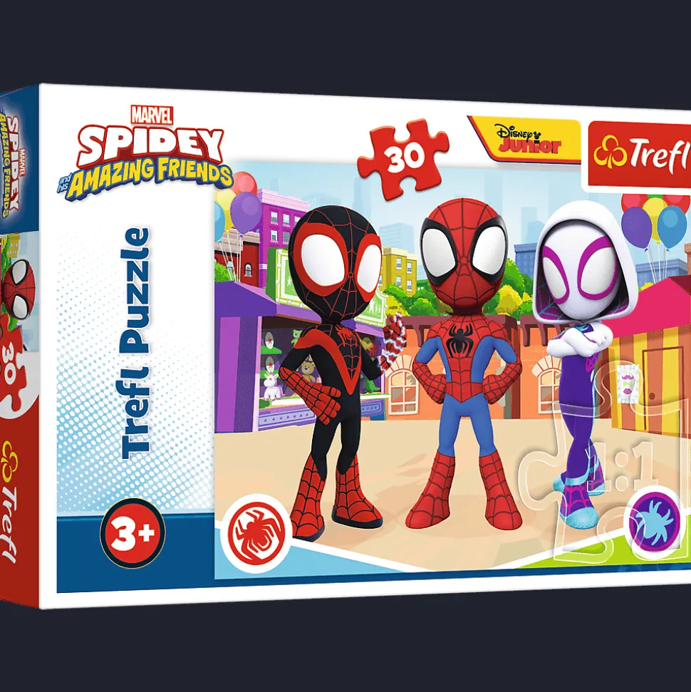 Przygody Spiday’a i przyjaciół to puzzle składające się z 30 elementów. Zaprojektowane z myślą o małych fanach Marvela. Po ułożeniu powstanie obrazek o wymiarach 20×27 cm.