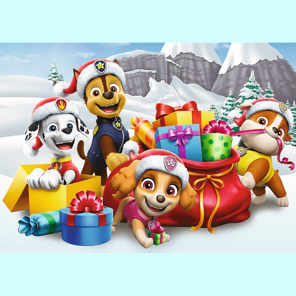 Świąteczny Psi Patrol to puzzle składające się z 100 elementów, zaprojektowane z myślą o małych fanach bajki Psi Patrol. Po ułożeniu układanki powstanie obrazek o wymiarach 410×275 mm.