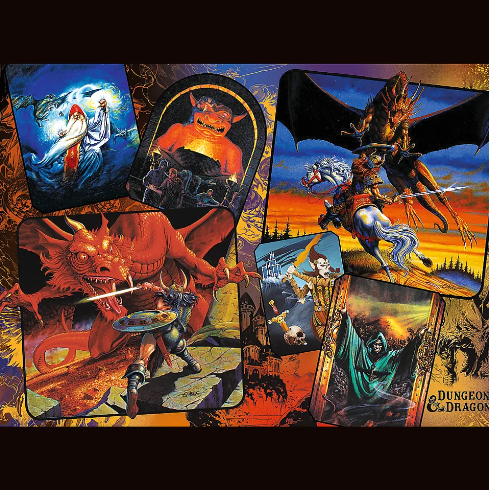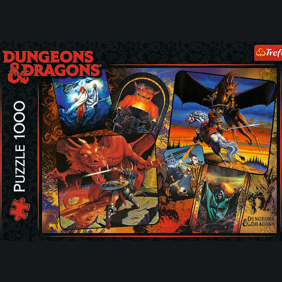 Puzzle Początki Dungeons & Dragons to zestaw 1000 elementów przedstawiający sceny z początków kultowej gry fabularnej Dungeons & Dragons. Na puzzlach można zobaczyć wczesne wersje postaci, takie jak wojownicy, magowie i potwory. Puzzle stanowią wyzwanie dla miłośników gier fabularnych oraz dla fanów puzzli, którzy chcą zbudować interesujący obrazek z dbałością o szczegóły. Po ułożeniu powstanie obrazek o wymiarach 683×480 mm.
