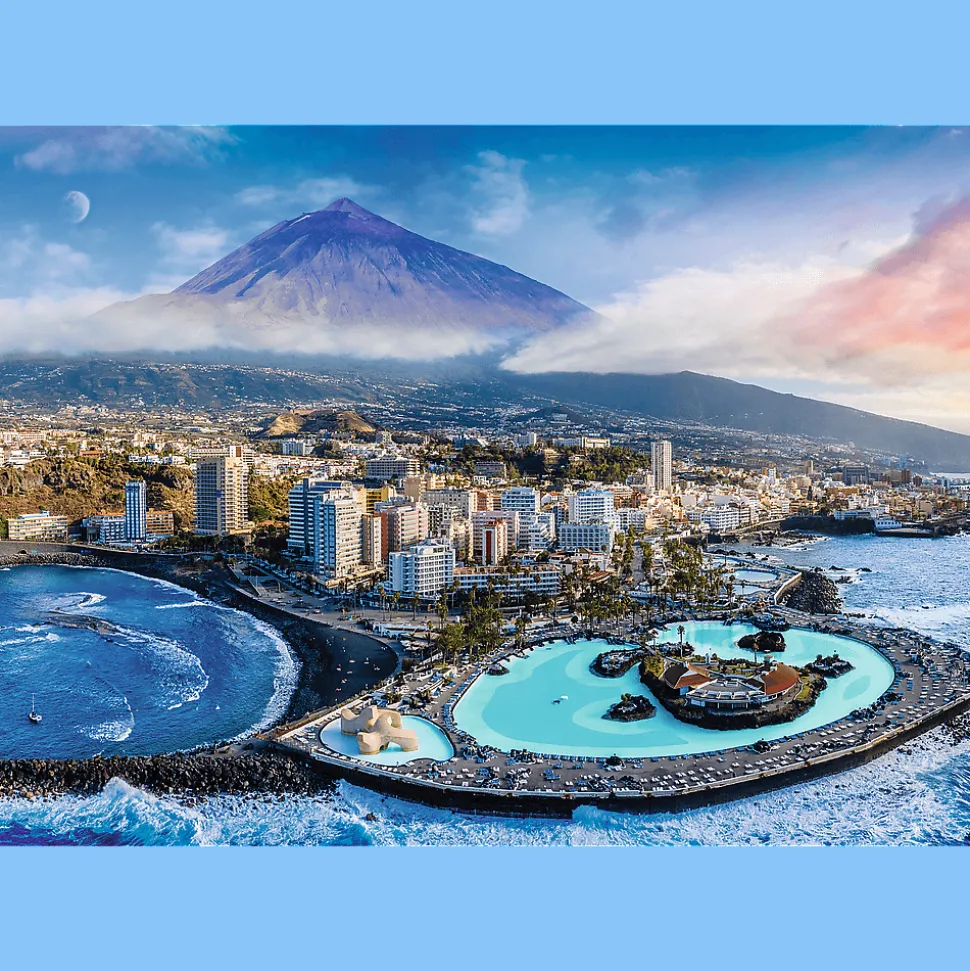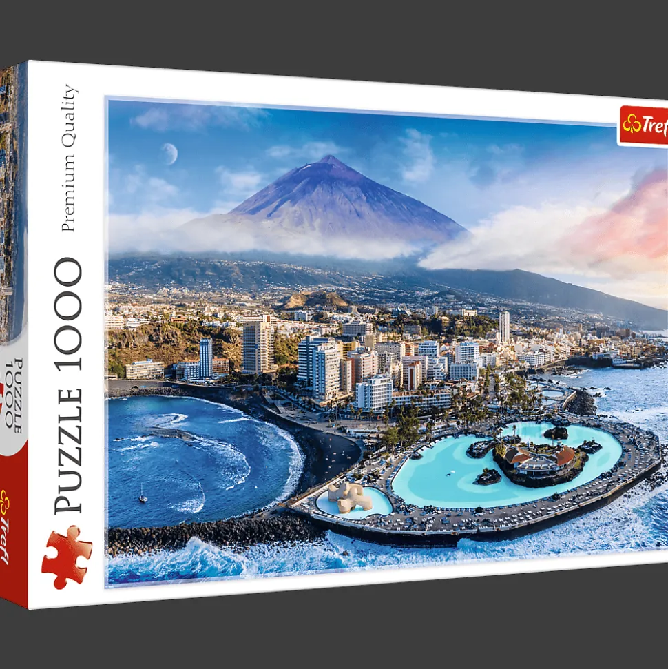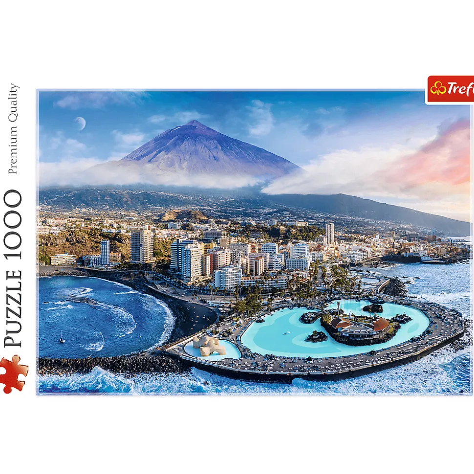 Puzzle Widok na Tenerefę, Hiszpania złożone z 1000 elementów, przedstawiają malowniczy widok na wyspę oraz górujący nią szczyt Teide. Po ułożeniu powstanie obrazek w rozmiarze 683×480 mm.