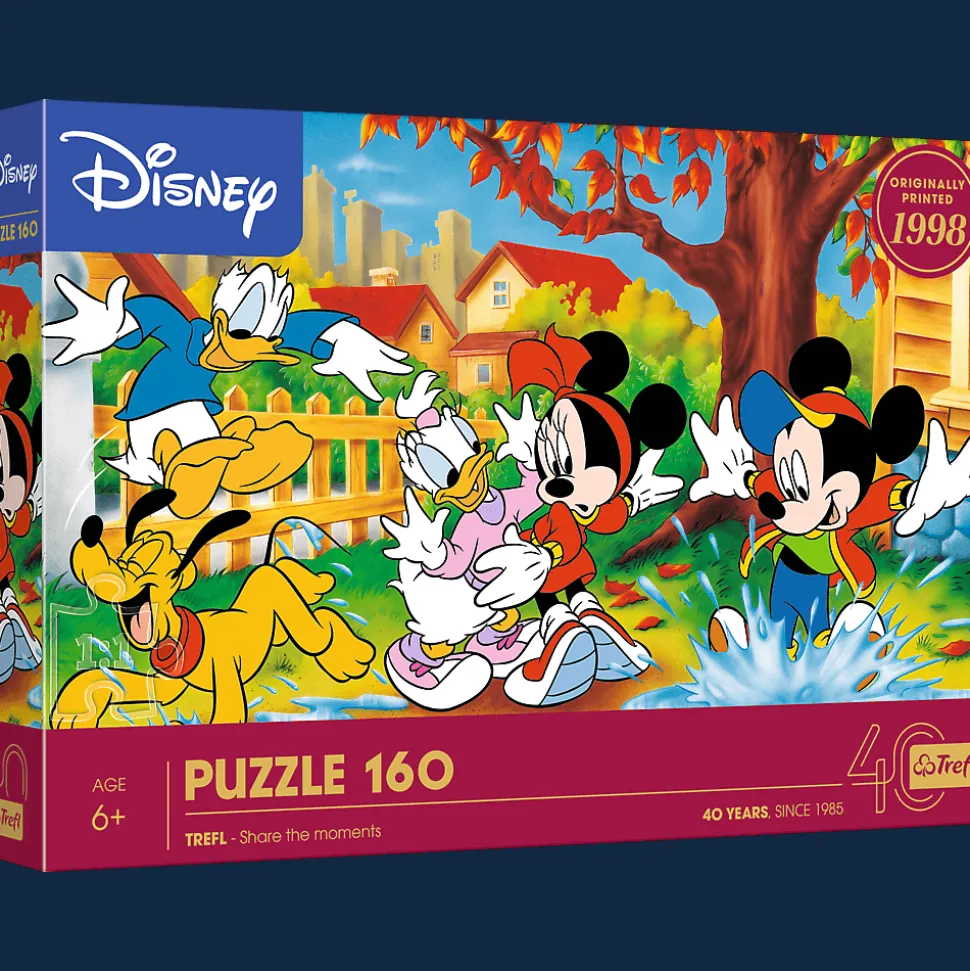 Zabawa w kałużach to puzzle składające się ze 160 elementów, które zachwycą małych fanów Myszki Mickey. Wchodzą w skład jubileuszowej serii układanek na 40-lecie firmy. Po ich ułożeniu powstanie obrazek o wymiarach 410×275 mm.