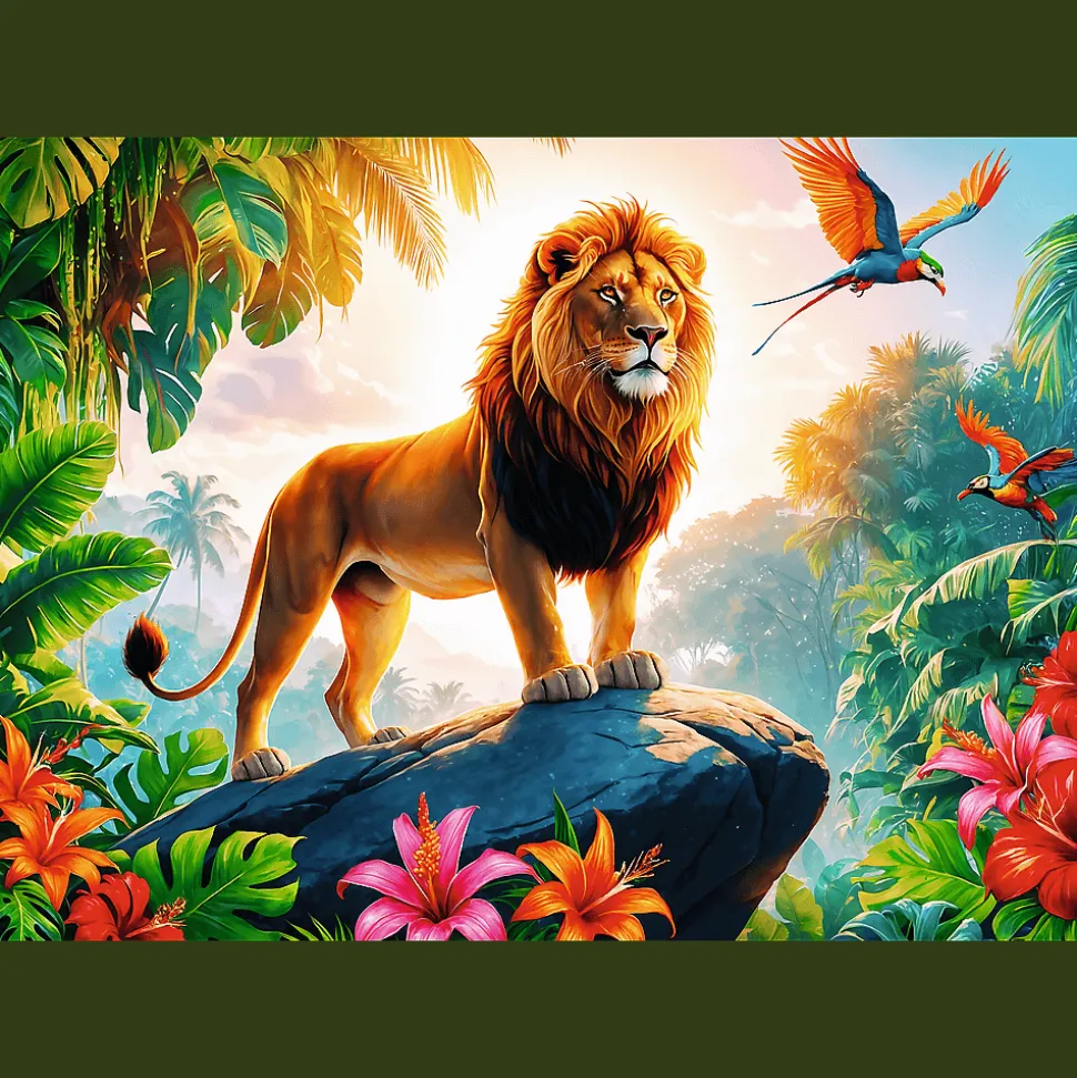 Król dżungli to puzzle składające się z 200 elementów, które zachwycą małych fanów lwów. Po ułożeniu powstanie obrazek o wymiarach 480×340 mm.