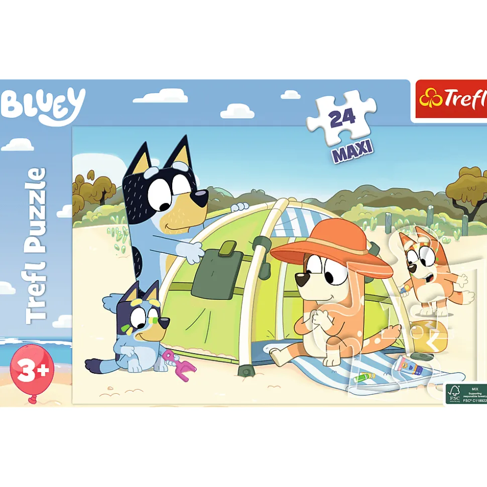 Puzzle 24 Maxi Wspaniały dzień Bluey składają się z 24 bardzo dużych elementów. Zostały zaprojektowane z myślą o wszystkich fanach i fankach bajki Bluey.