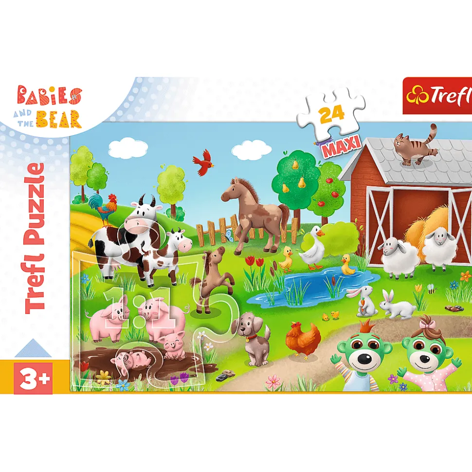 Bobaski i zwierzęta to puzzle dla maluchów, składające się z 24 bardzo dużych elementów. Zostały zaprojektowane z myślą o małych miłośnikach zwierząt i bajki Bobaski i Miś. Po ułożeniu układanki powstanie duży obrazek o wymiarach 600×400 mm.