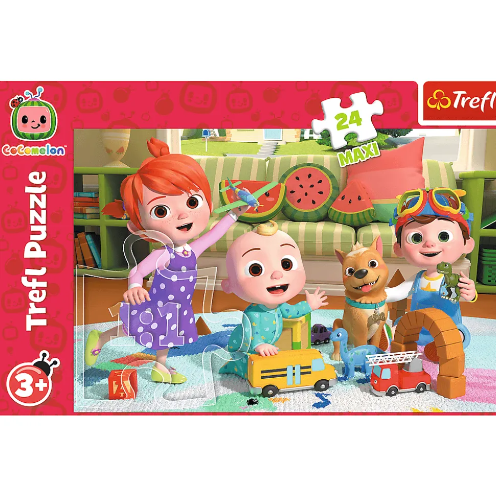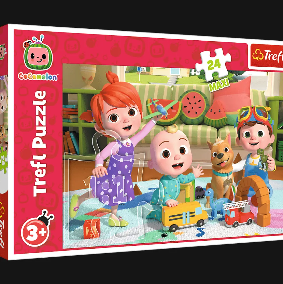 Cocomelon, gotowi na przygodę to puzzle składające się z 24 bardzo dużych elementów, zaprojektowaną z myślą o wszystkich fanach i fankach bajki Cocomelon.