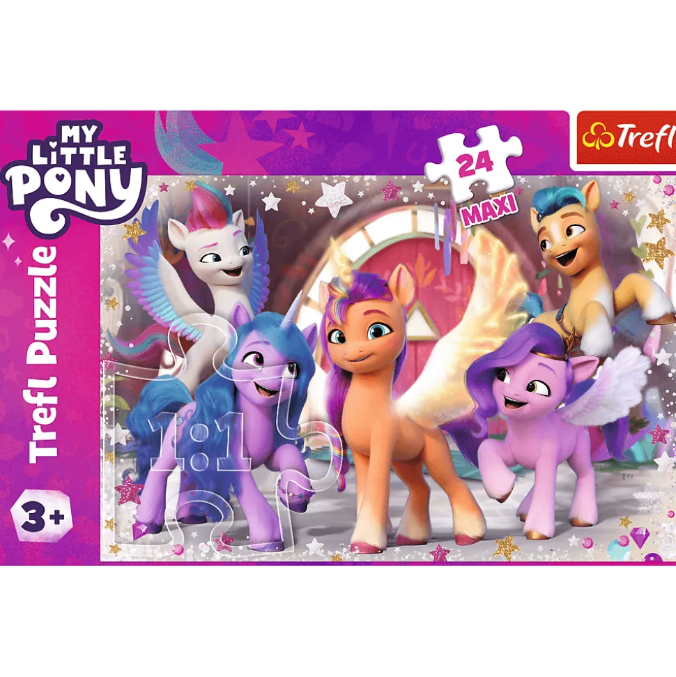 Wesoły dzień kucyków to puzzle składające się z 24 bardzo dużych elementów, zaprojektowaną z myślą o wszystkich fanach i fankach najki My Little Pony.