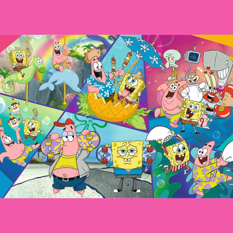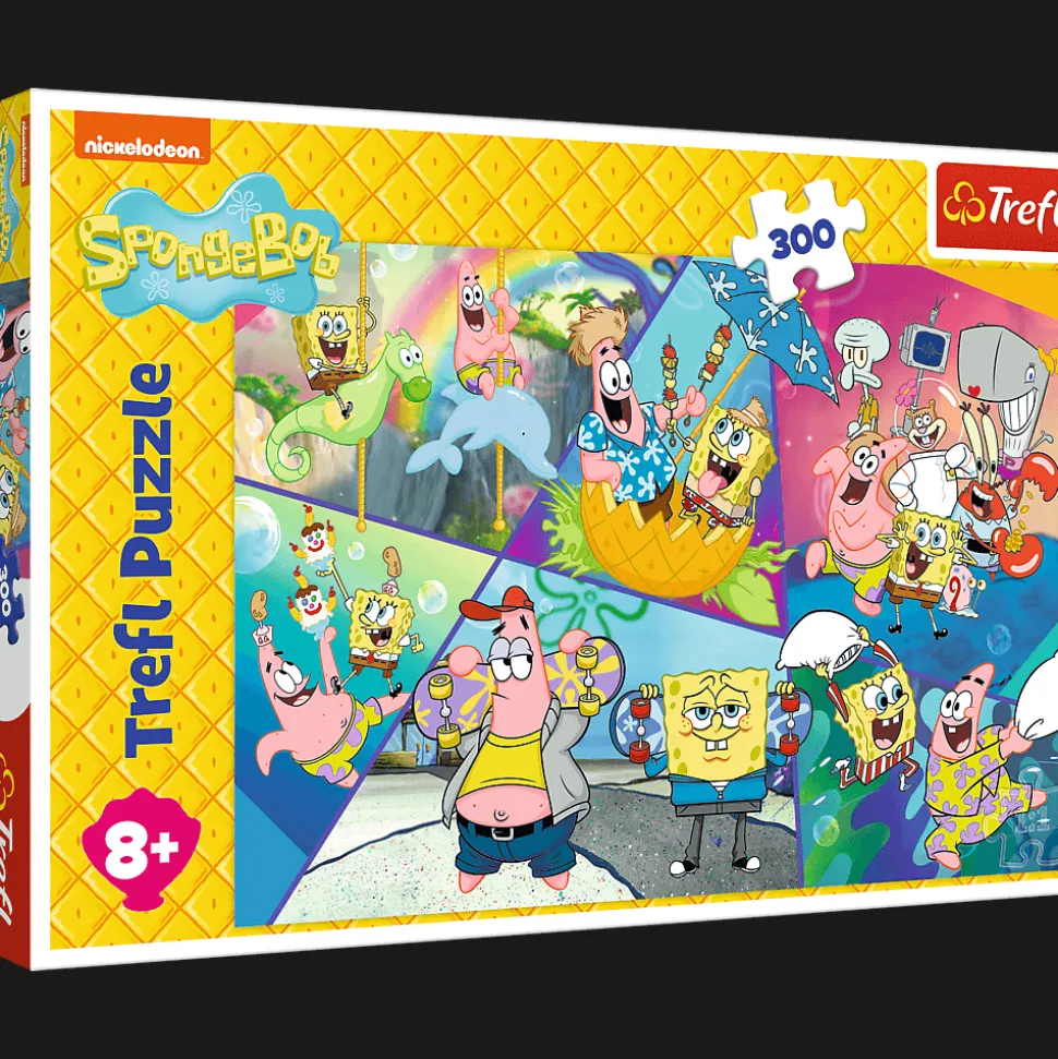 SpongeBob w Bikini Dolnym to puzzle składające się z 300 elementów przedstawiające bohaterów bajki SpongeBob. Po ułożeniu układanki powstanie obrazek o wymiarach 600×400 mm.