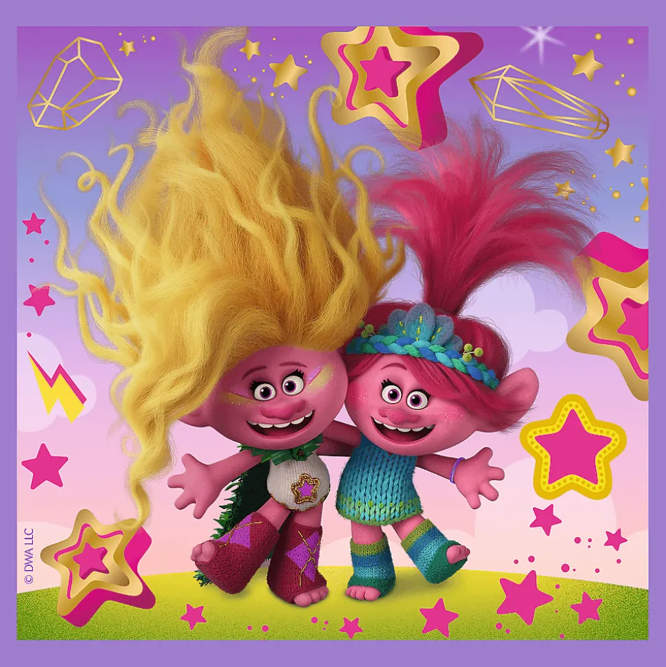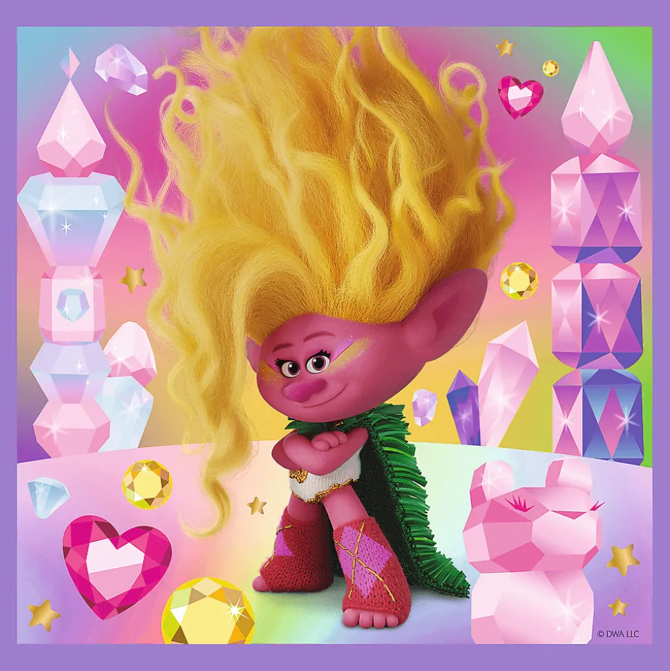 Poznaj wesołe Trolle to puzzle dla dzieci składające się z 3 niezależnych układanek, zaprojektowane z myślą o wszystkich fanach i fankach przygód bohaterów bajki Trolls. Po ułożeniu układanek powstaną obrazki o wymiarach 200×195 mm. Zróżnicowana liczba elementów pozwala na zabawę zarówno młodszym, jak i nieco starszym dzieciom.
