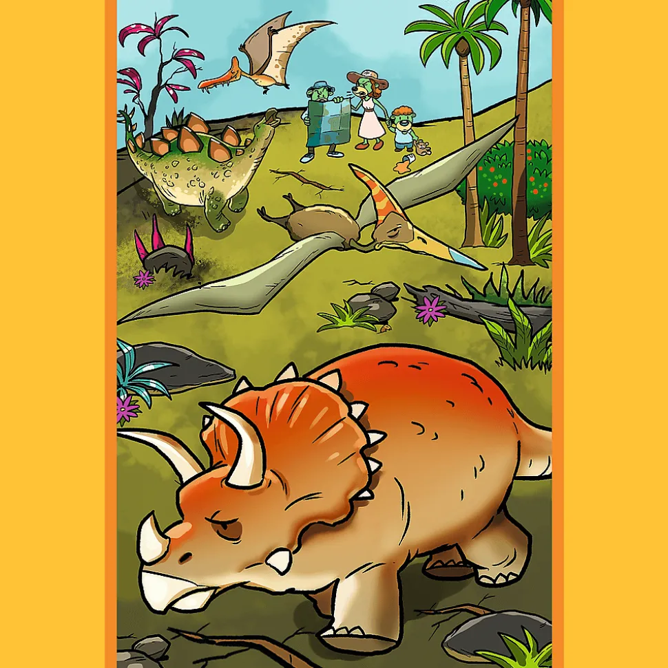 Trefliki w świecie dinozaurów to puzzle przedstawiające wesołe Trefliki, które z fascynacją przyglądają się ciekawemu życiu dinozaurów. Każda z układanek pozwoli stworzyć obrazek o wymiarach 275×180 mm.