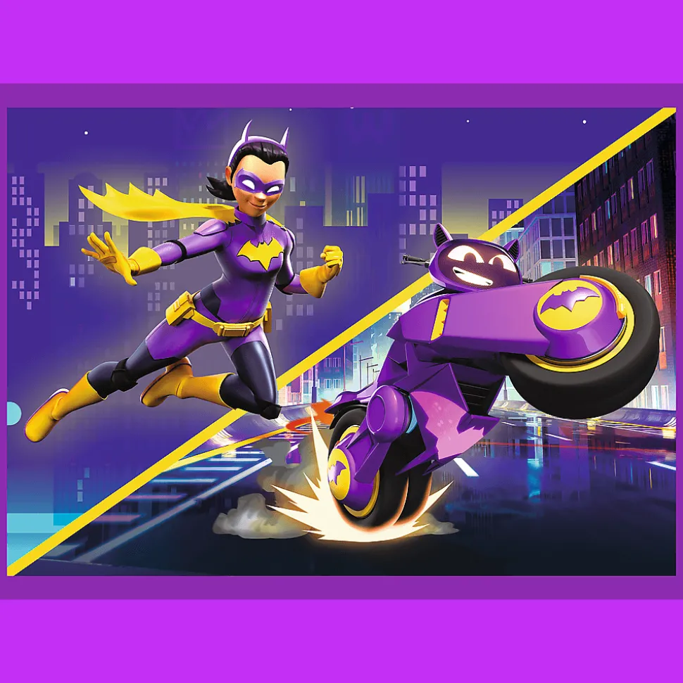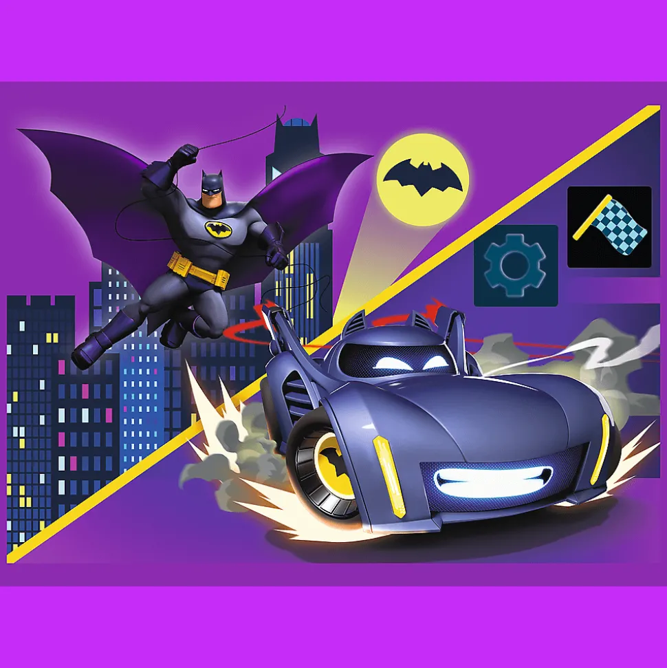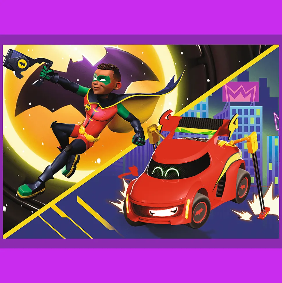 Poznaj Batwheels to 4 niezależne układanki dla dzieci, zaprojektowane z myślą o małych fanach przygód bohaterów serialu o kultowych pojazdach z uniwersum DC. Po ułożeniu puzzli powstaną 4 obrazki, z czego największy o wymiarach 285×205 mm. Zróżnicowana liczba elementów pozwala na zabawę zarówno młodszym, jak i nieco starszym dzieciom.