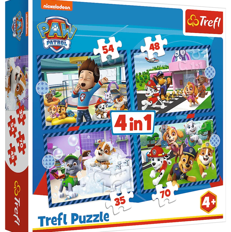 Psie sprawy to 4 niezależne układanki dla dzieci, zaprojektowane z myślą o małych fanach przygód bohaterów bajki Psi Patrol. Po ułożeniu puzzli powstaną 4 obrazki, z czego największy o wymiarach 285×205 mm. Zróżnicowana liczba elementów pozwala na zabawę zarówno młodszym, jak i nieco starszym dzieciom.