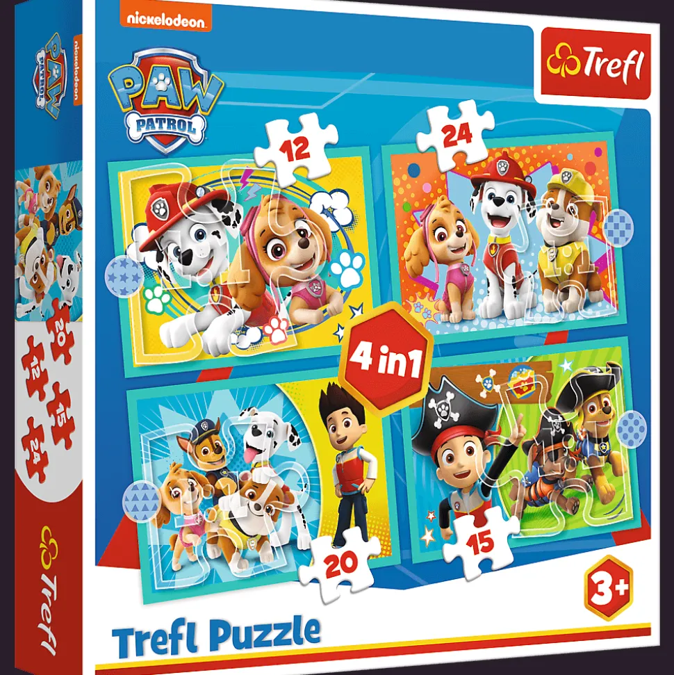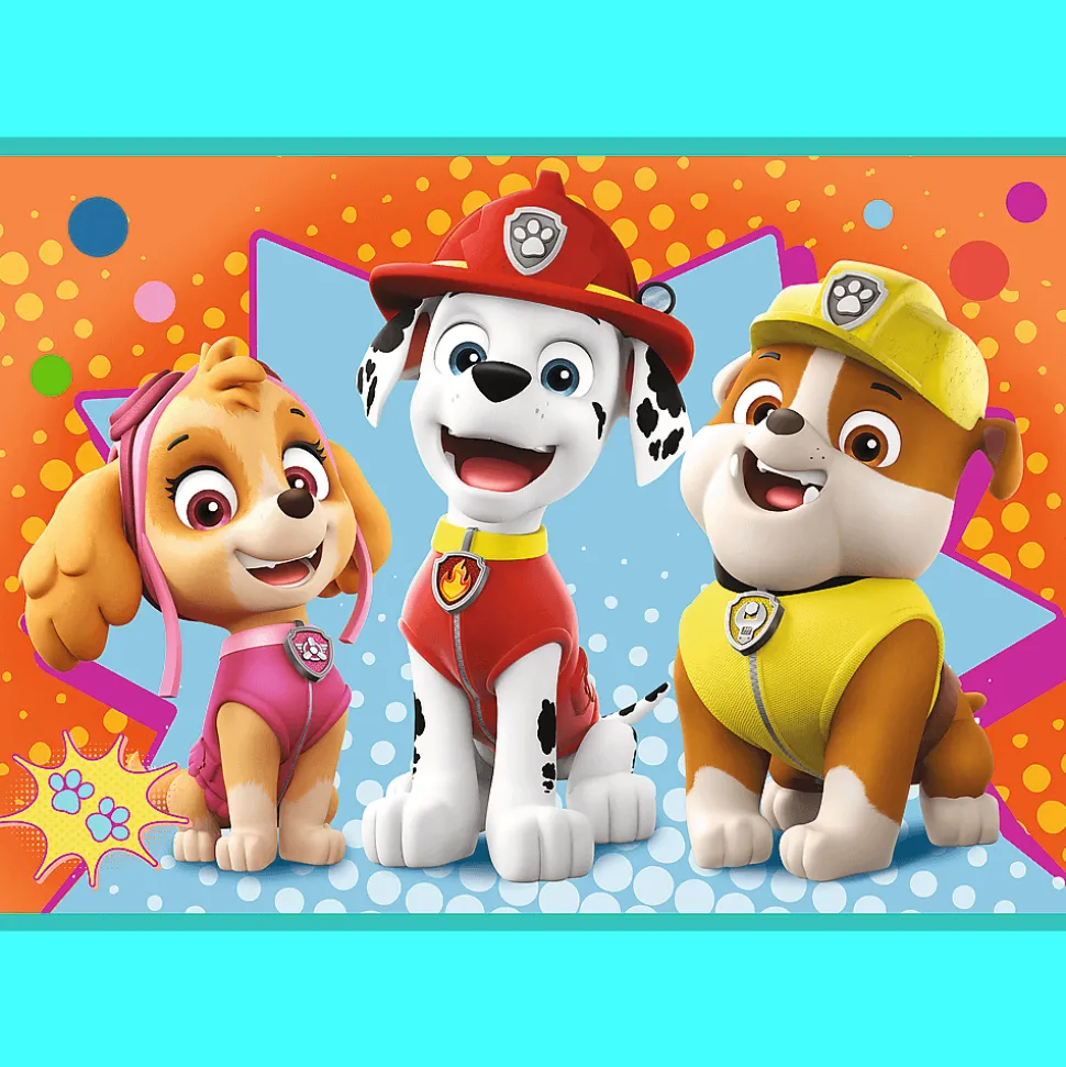 Wesoła ekipa Psiego Patrolu to puzzle składające się z 4 niezależnych układanek, zaprojektowane z myślą o wszystkich fanach i fankach popularnego serialu dla dzieci Psi Patrol. Po ułożeniu układanek powstaną obrazki o wymiarach 285×205 mm. Zróżnicowana liczba elementów pozwala na zabawę zarówno młodszym, jak i nieco starszym dzieciom.