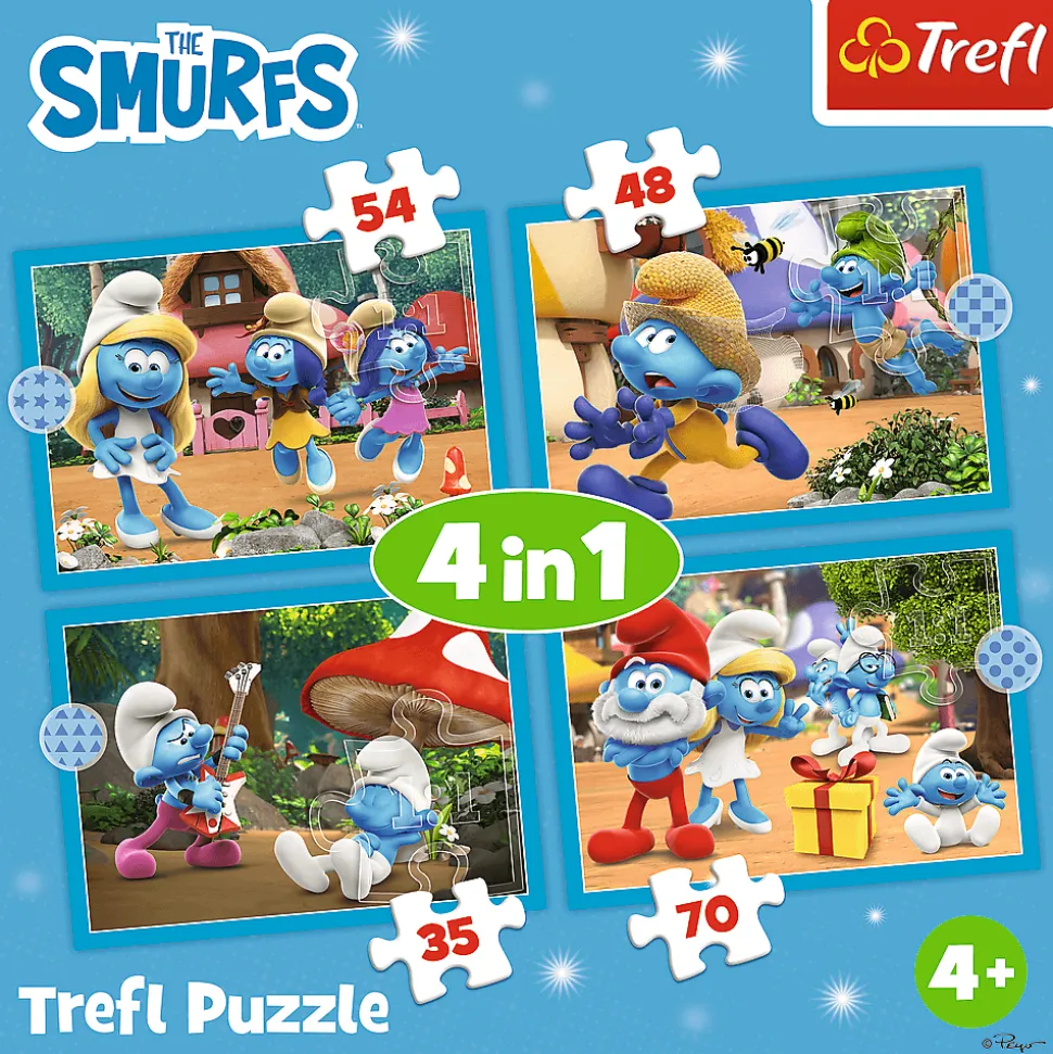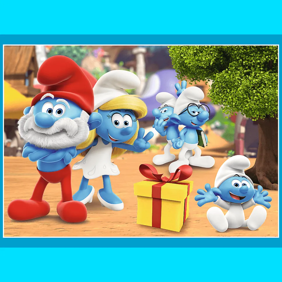 Wioska Smerfów to 4 niezależne układanki, zaprojektowane z myślą o małych fanach przygód bohaterów bajki Smerfy. Po ułożeniu puzzli powstaną 4 obrazki, z czego największy o wymiarach 285×205 mm. Zróżnicowana liczba elementów pozwala na zabawę zarówno młodszym, jak i nieco starszym dzieciom.