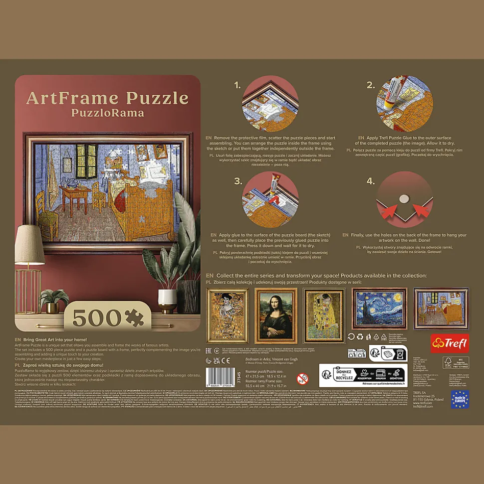 Odkryj zupełnie nowy wymiar układania puzzli dzięki serii PuzzloRama – to nie tylko zabawa, ale i stylowa dekoracja Twojego wnętrza! Każdy zestaw składa się z 500 elementów, które po ułożeniu zamieniają się w piękną, oprawioną w ramę reprodukcję jednego z najsłynniejszych dzieł malarstwa